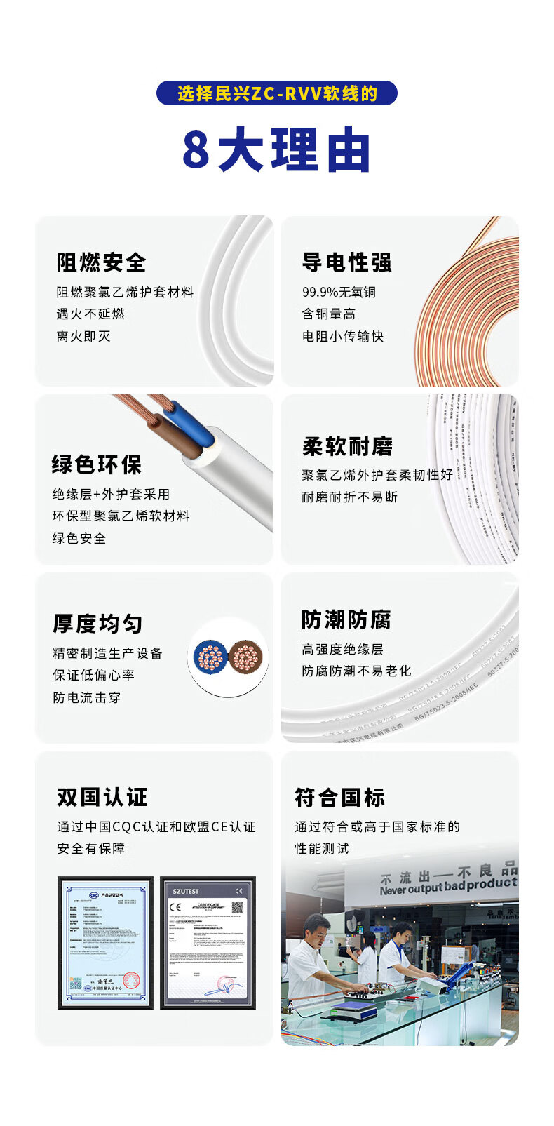 Minxing Cable 2.5 square copper core wire RVV three-core 3*2.5 national standard copper wire sheathed wire ZC-RVV-3*2.5-1m white