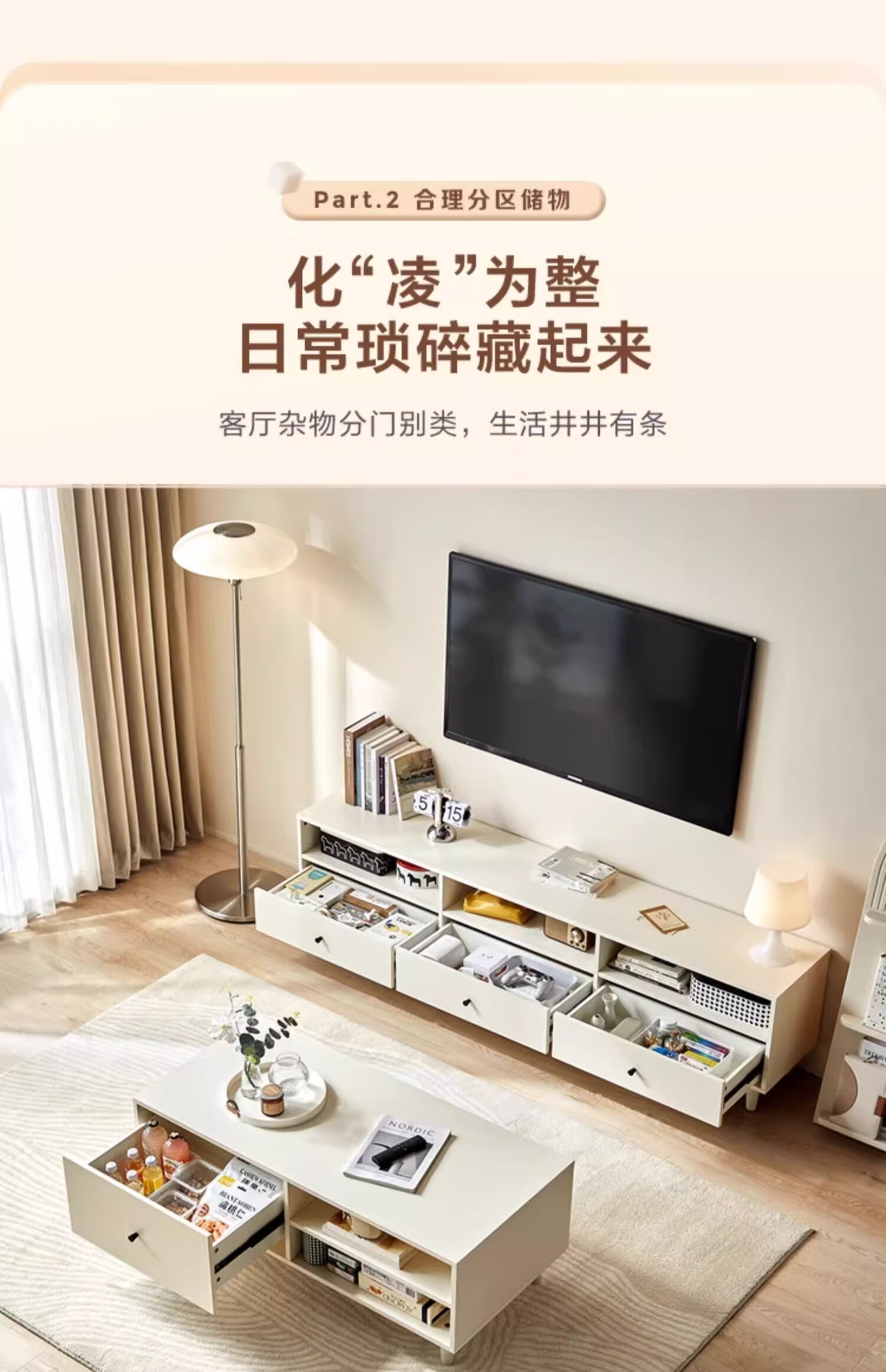 Lin's home floor-standing TV cabinet coffee table living room home modern simple small apartment MI1L