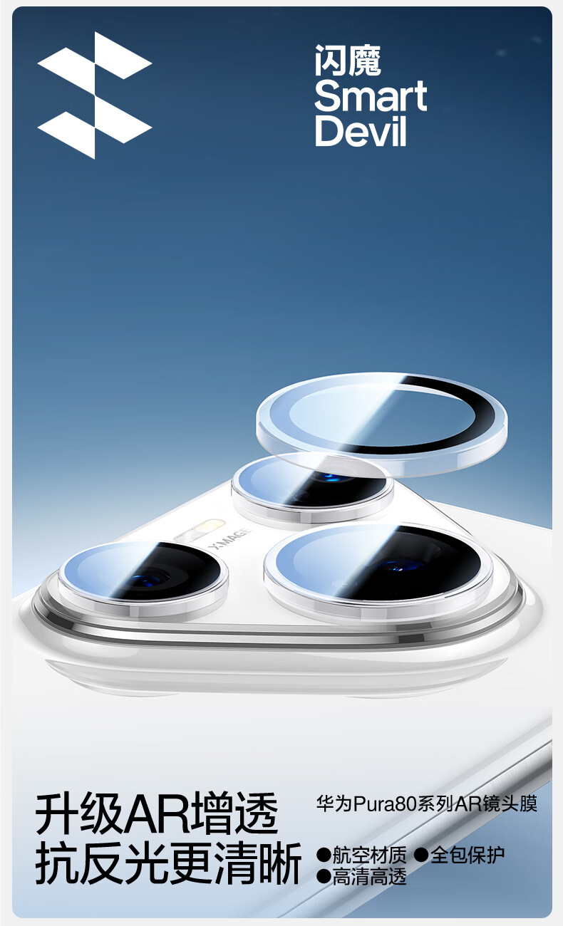 Flash Magic is suitable for Huawei pura80pro/+ lens film AR anti-reflective p80pro+ tempered glass film anti-fingerprint automatic positioning camera protective film transparent 1 set