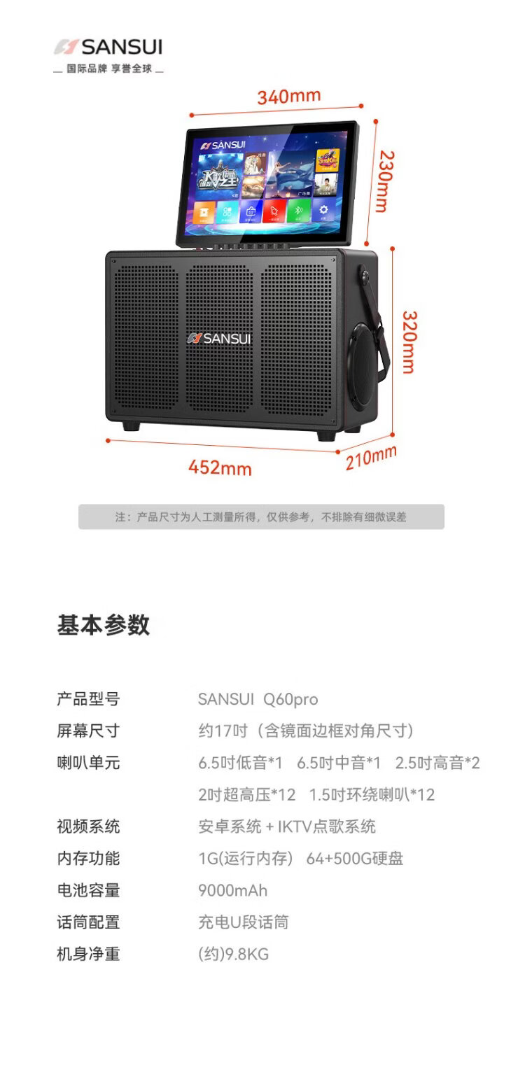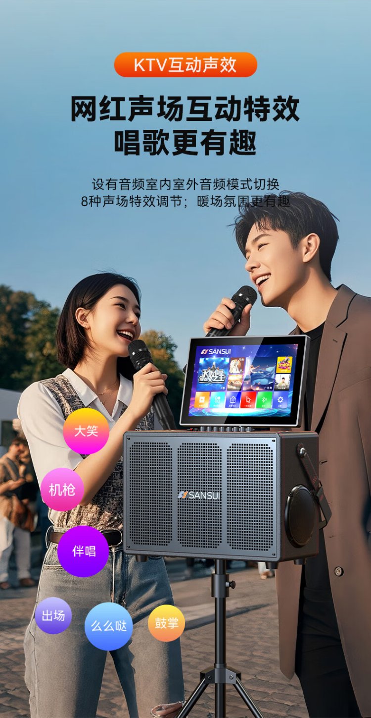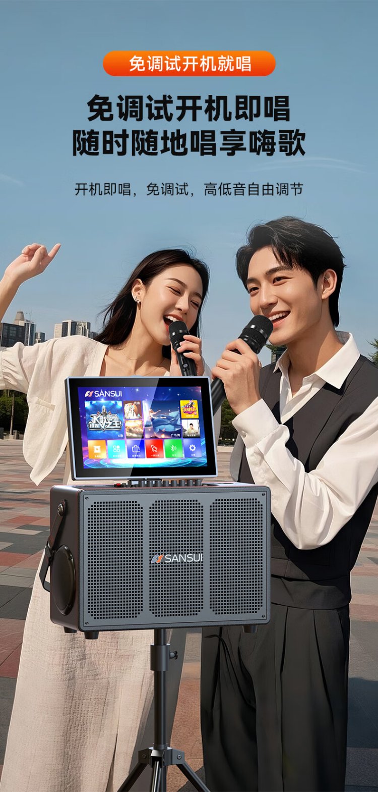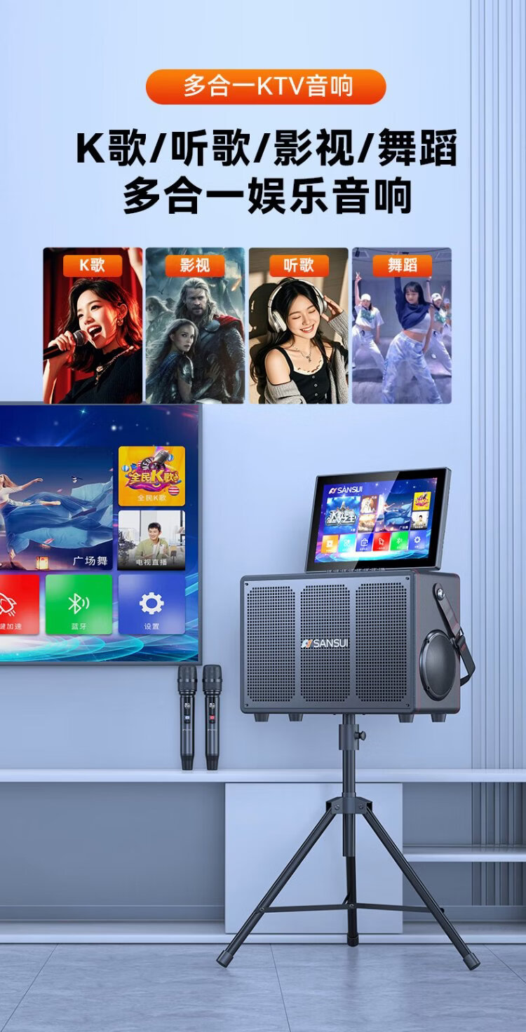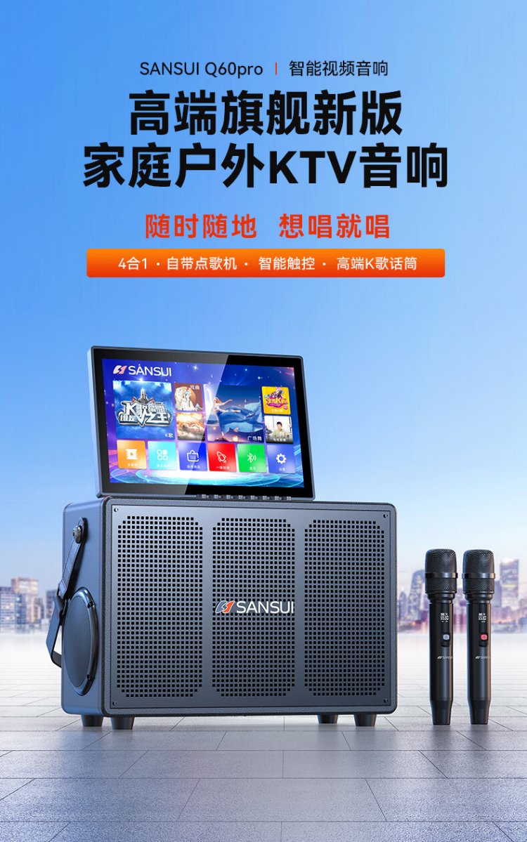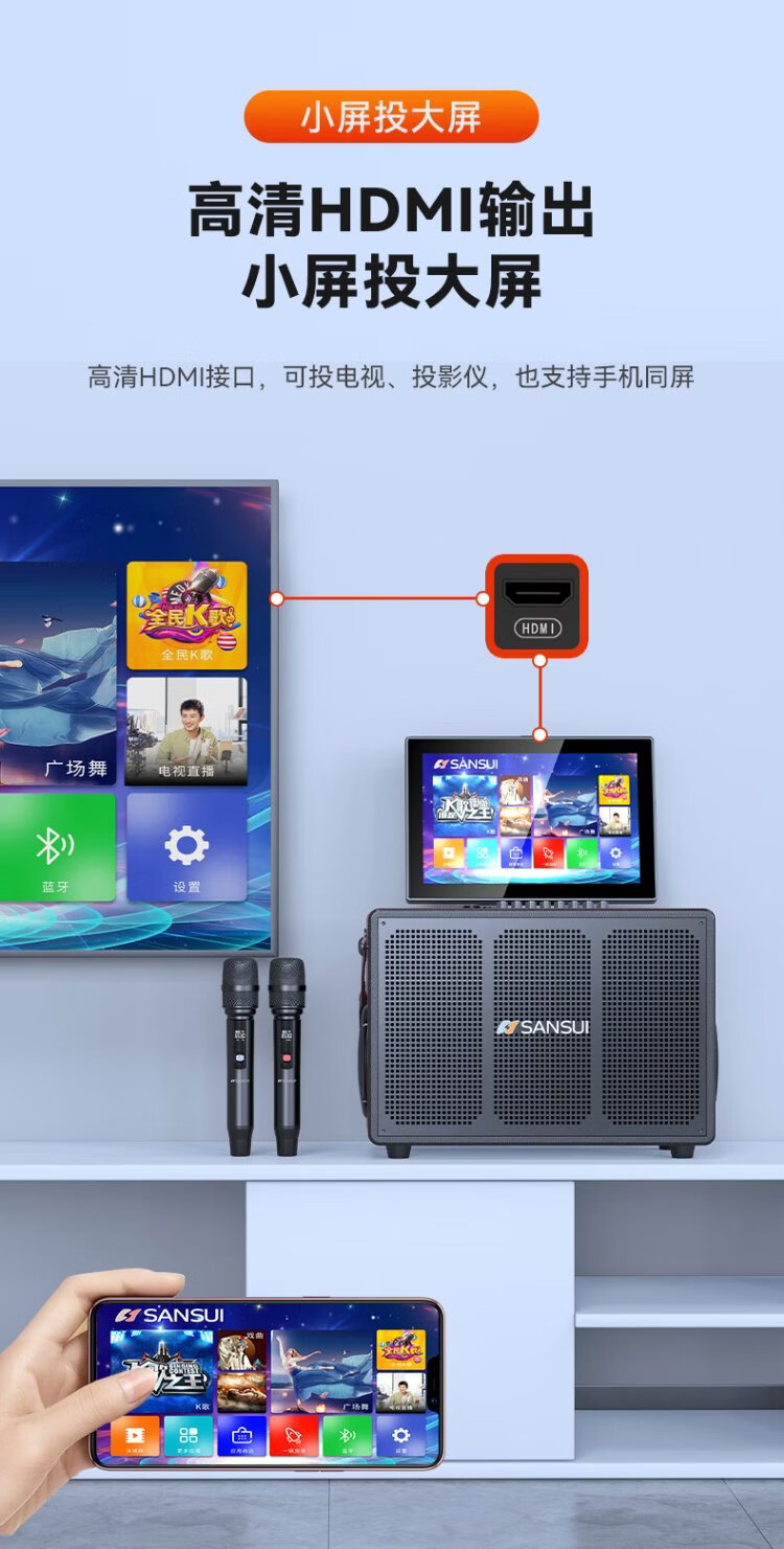 SANSUI Q60pro outdoor karaoke dedicated karaoke speaker home KTV audio set karaoke all-in-one machine home singing machine full set of equipment mobile smart Bluetooth musical instrument speaker
