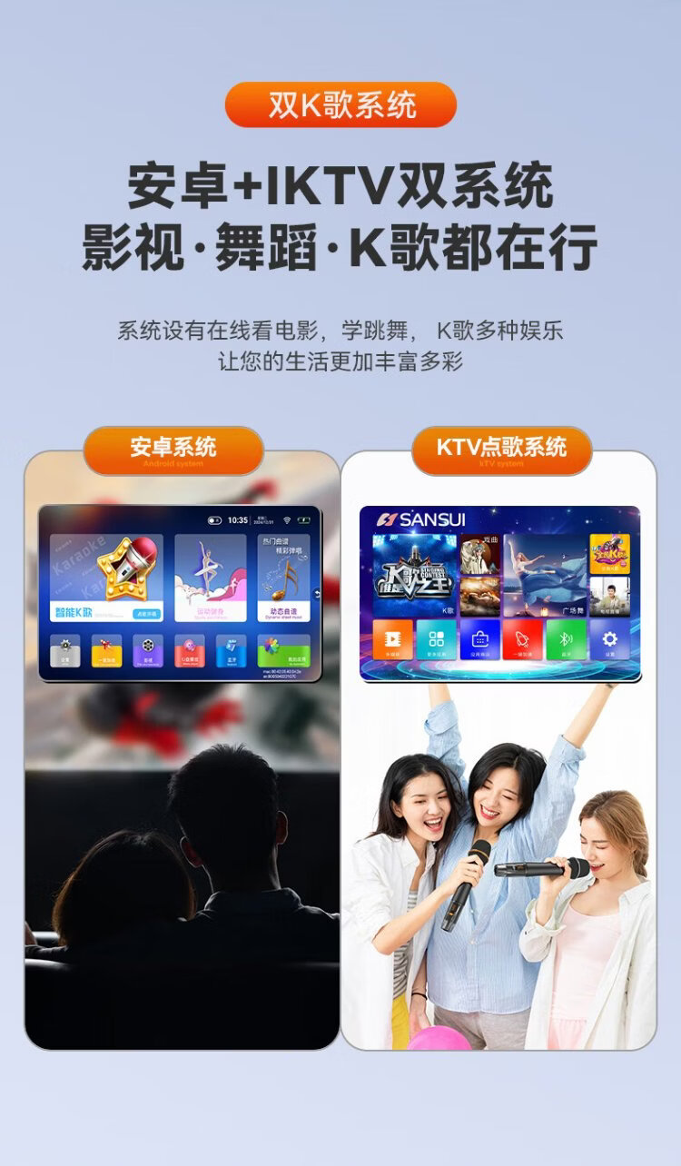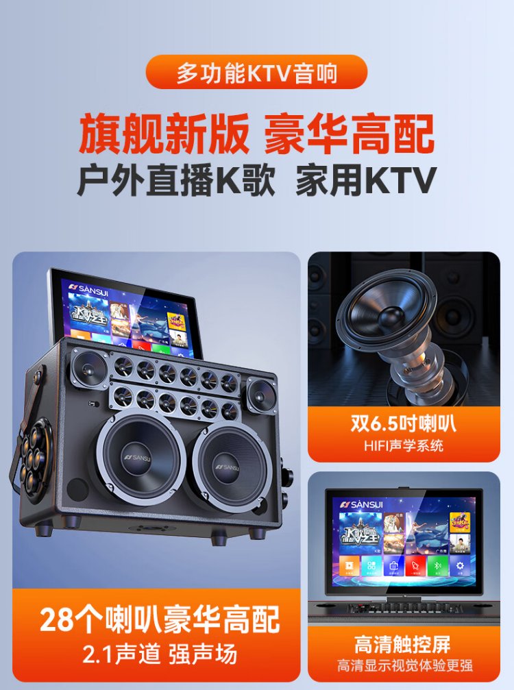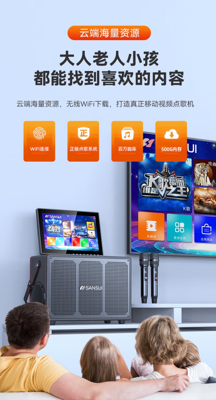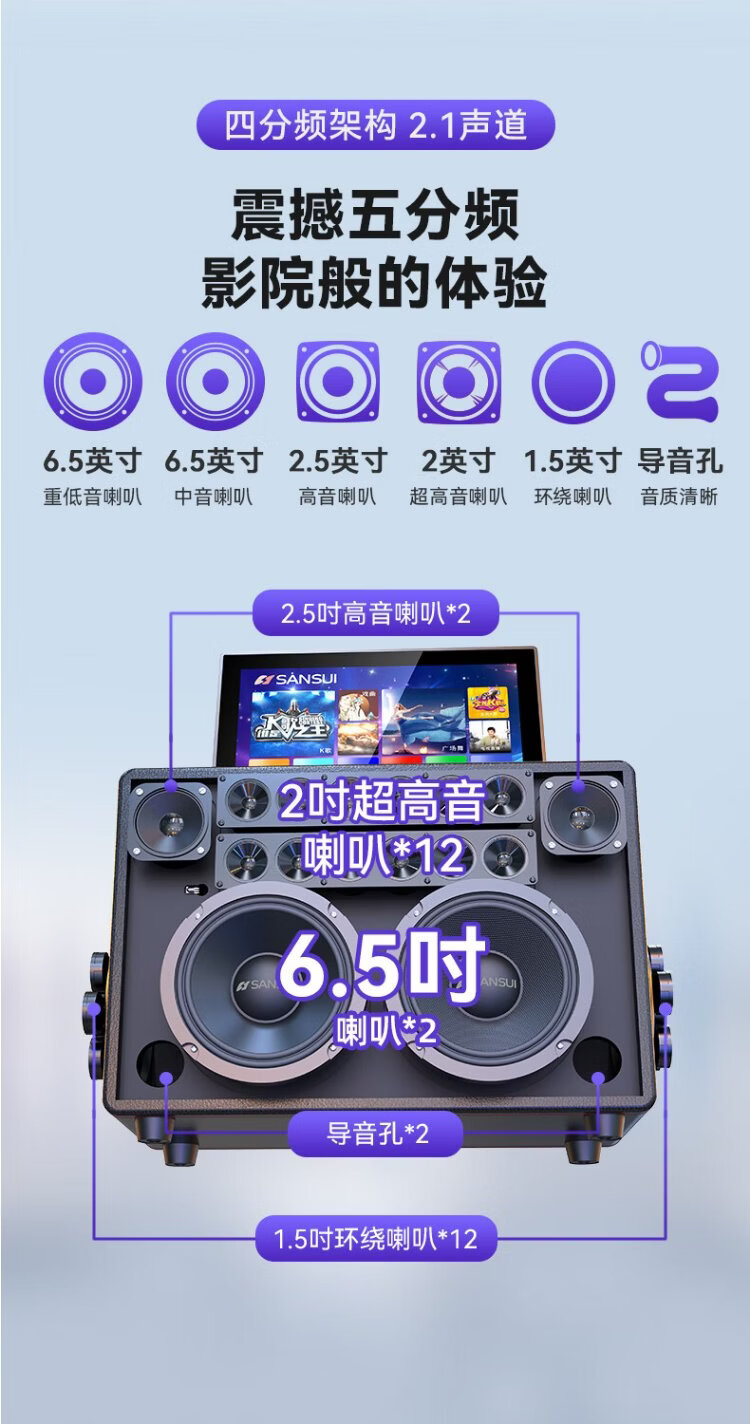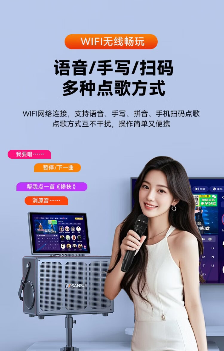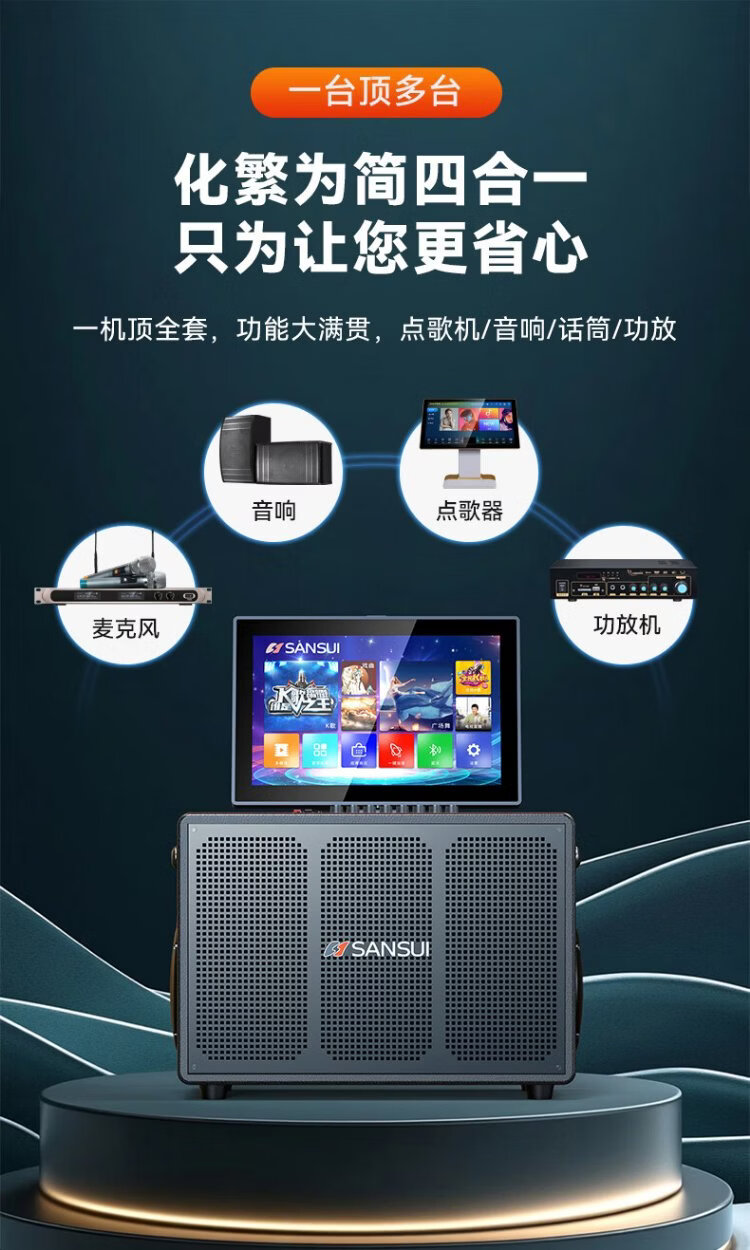 SANSUI Q60pro outdoor karaoke dedicated karaoke speaker home KTV audio set karaoke all-in-one machine home singing machine full set of equipment mobile smart Bluetooth musical instrument speaker