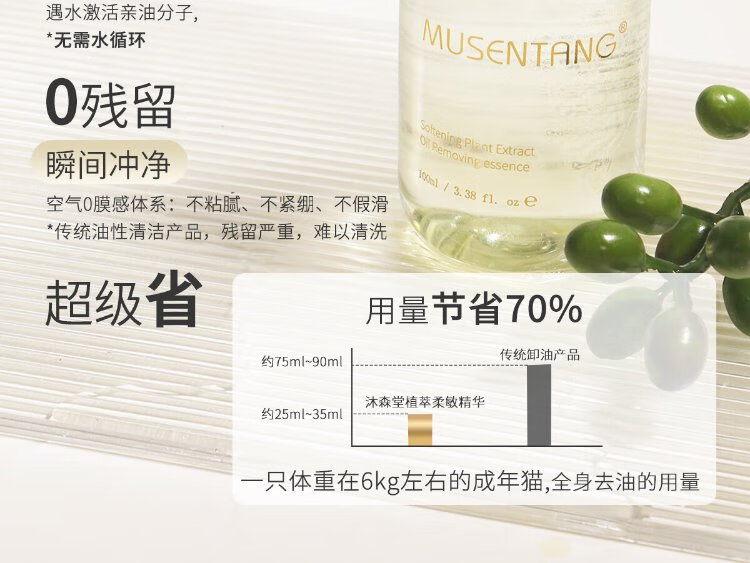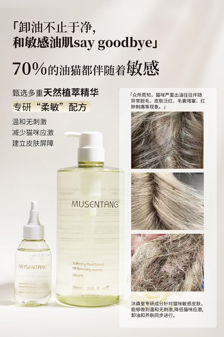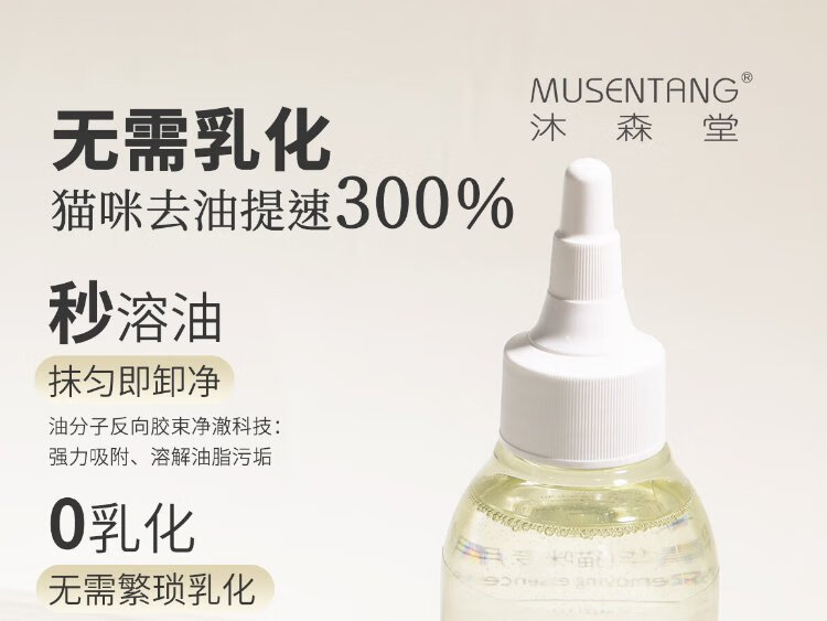 Musentang Plant Extract Soft Sensitive Oil Removal Essence 50ml Cat Oil Removal Essence No need for emulsification, dissolves oil in seconds, removes oil and nourishes skin