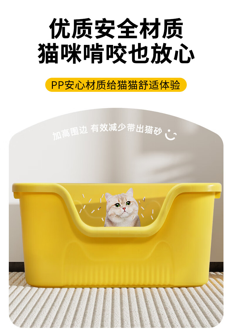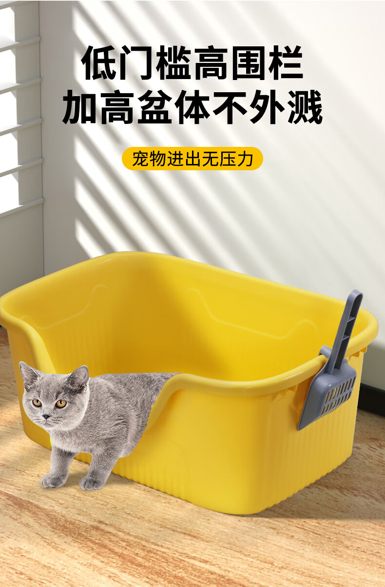 Cute star pet cat litter box, extra large space, deep anti-splash cat litter box, cat toilet, extra large anti-odor open type huge cat litter box