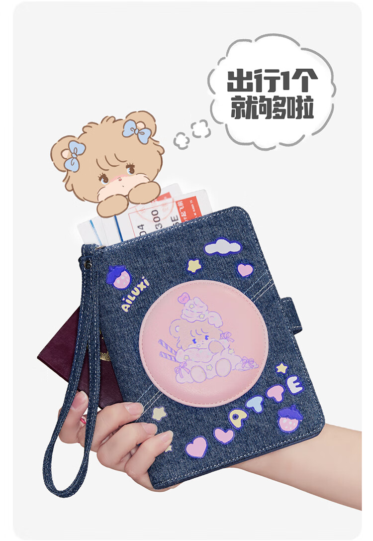 Ailuxi's new cute co-branded passport storage bag, large capacity hand wallet and card bag, two-in-one birthday gift for girlfriend