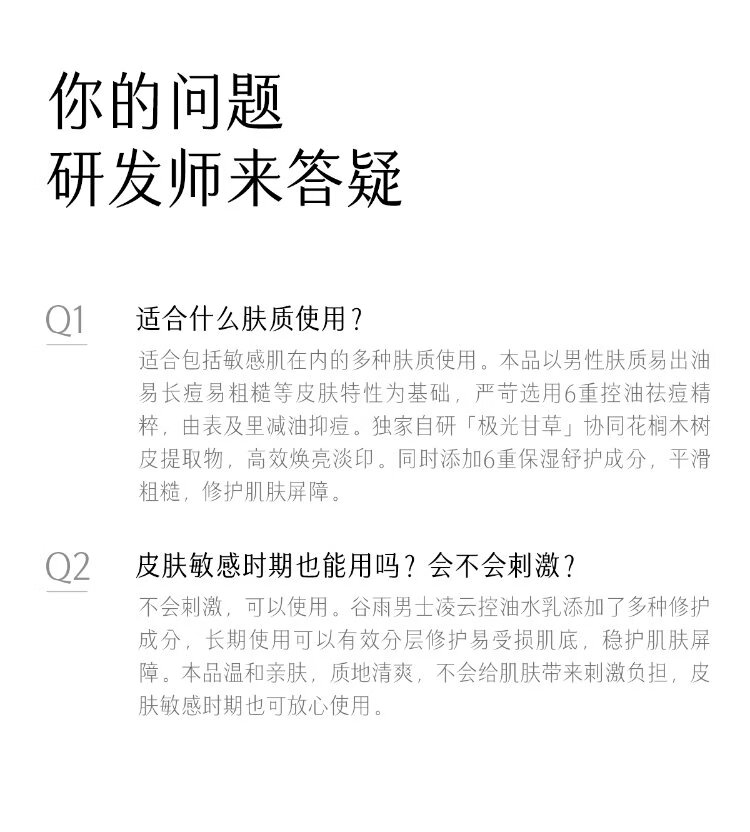 Guyu men's oil control lotion 60ml oil control, acne removal, light mark repair, moisturizing cosmetics
