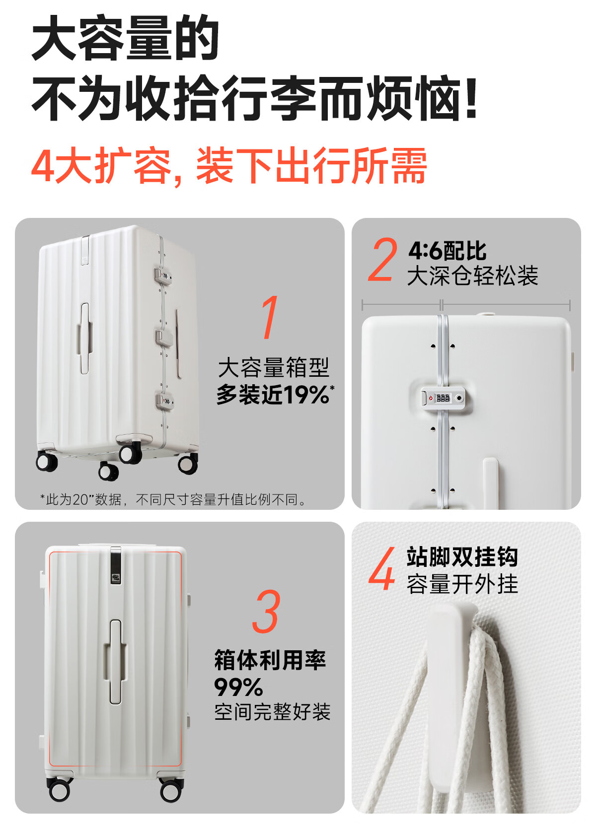 Hanker large-capacity suitcase aluminum frame women's boarding trolley case men's 20-inch rose white 44 liter password suitcase enlarged
