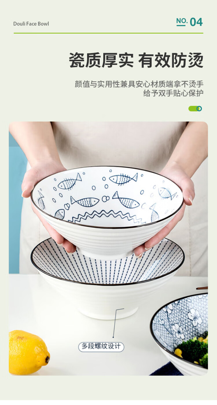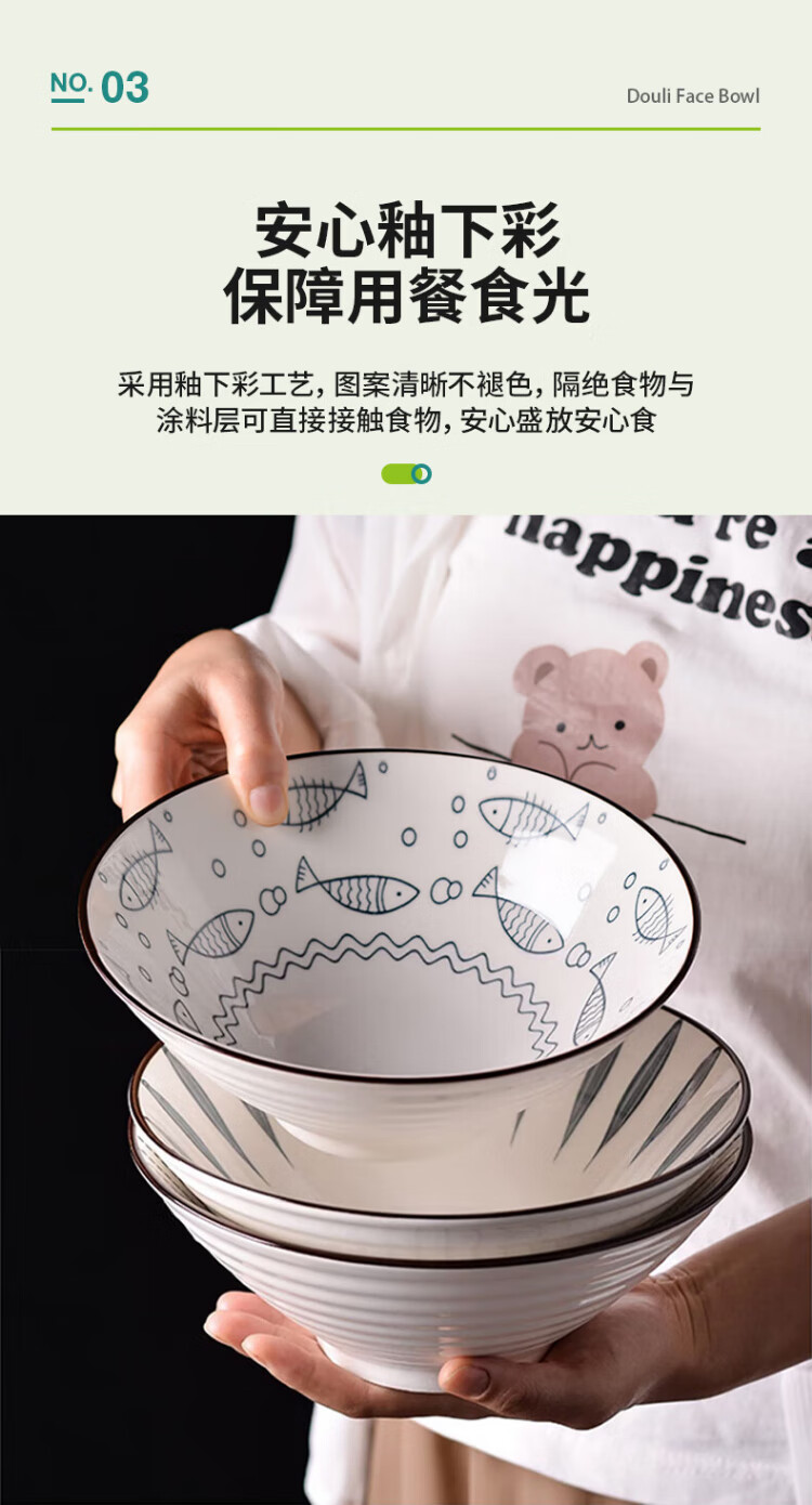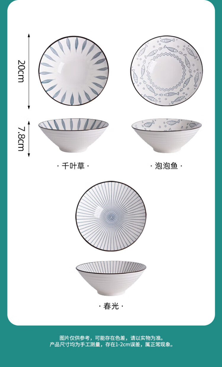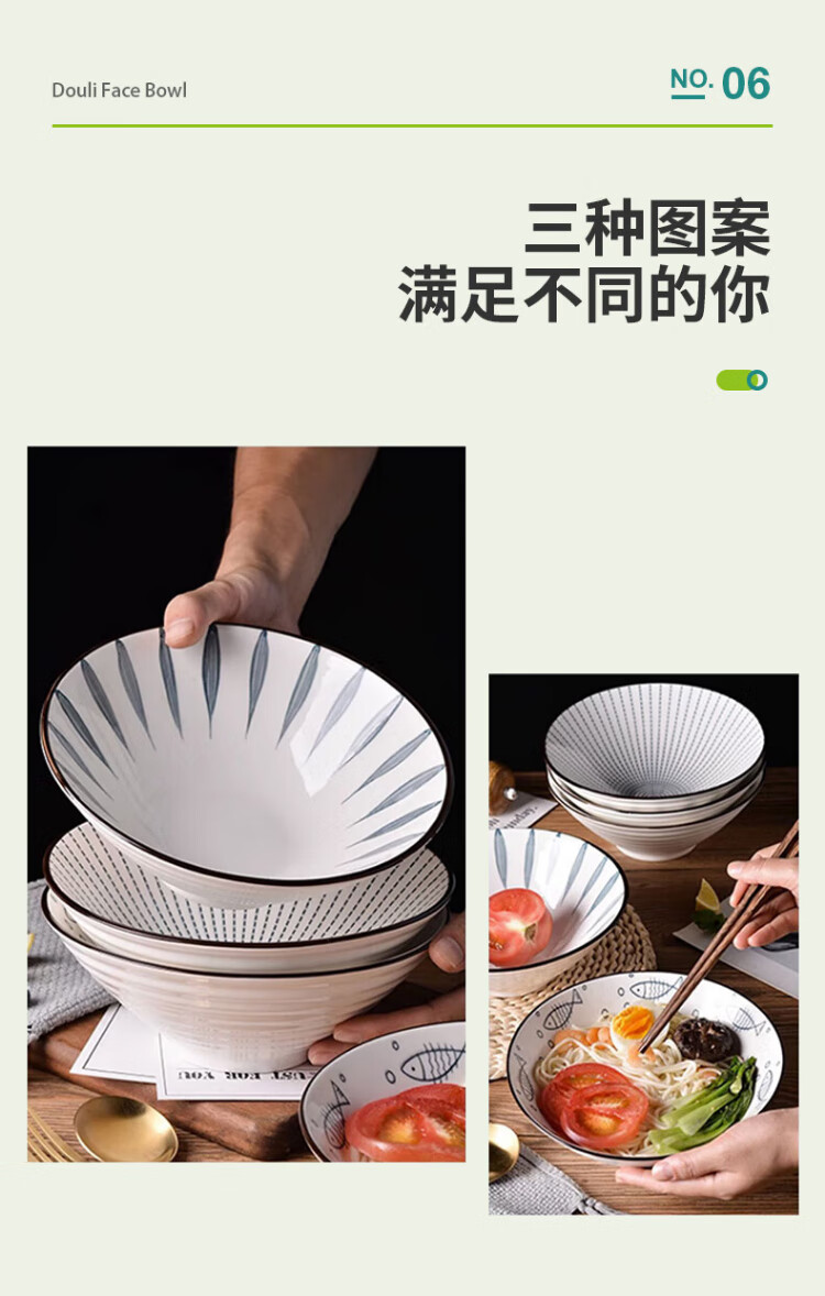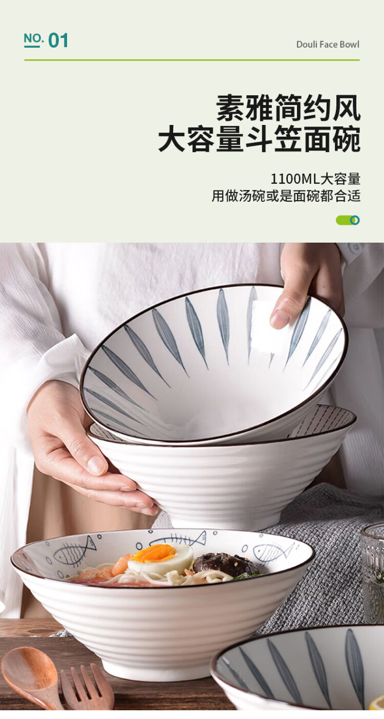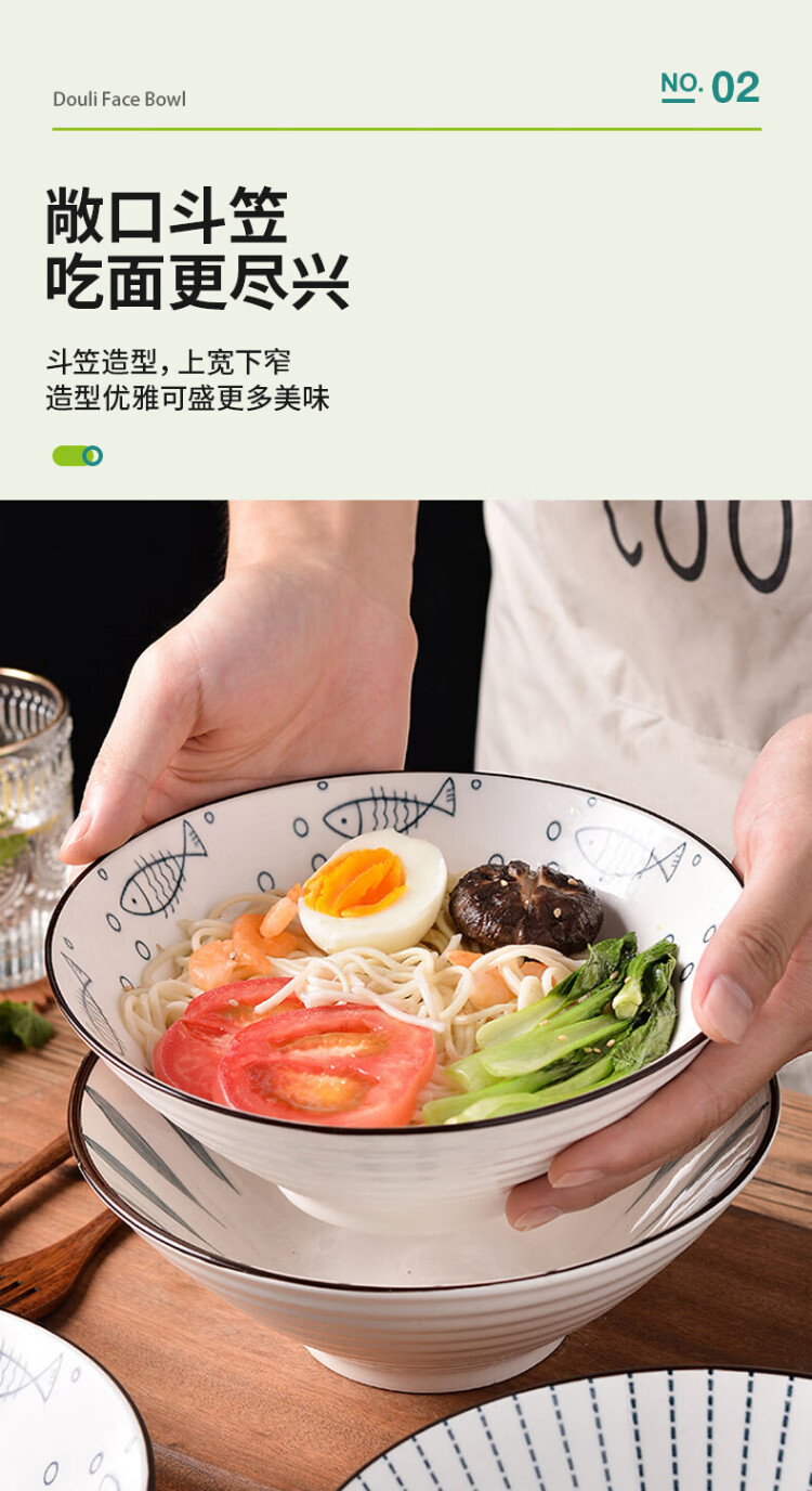 Aomeiyou Japanese-style 8-inch ramen bowl, bamboo hat bowl, household large bowl tableware, large soup bowl, instant noodle bowl, 4-pack