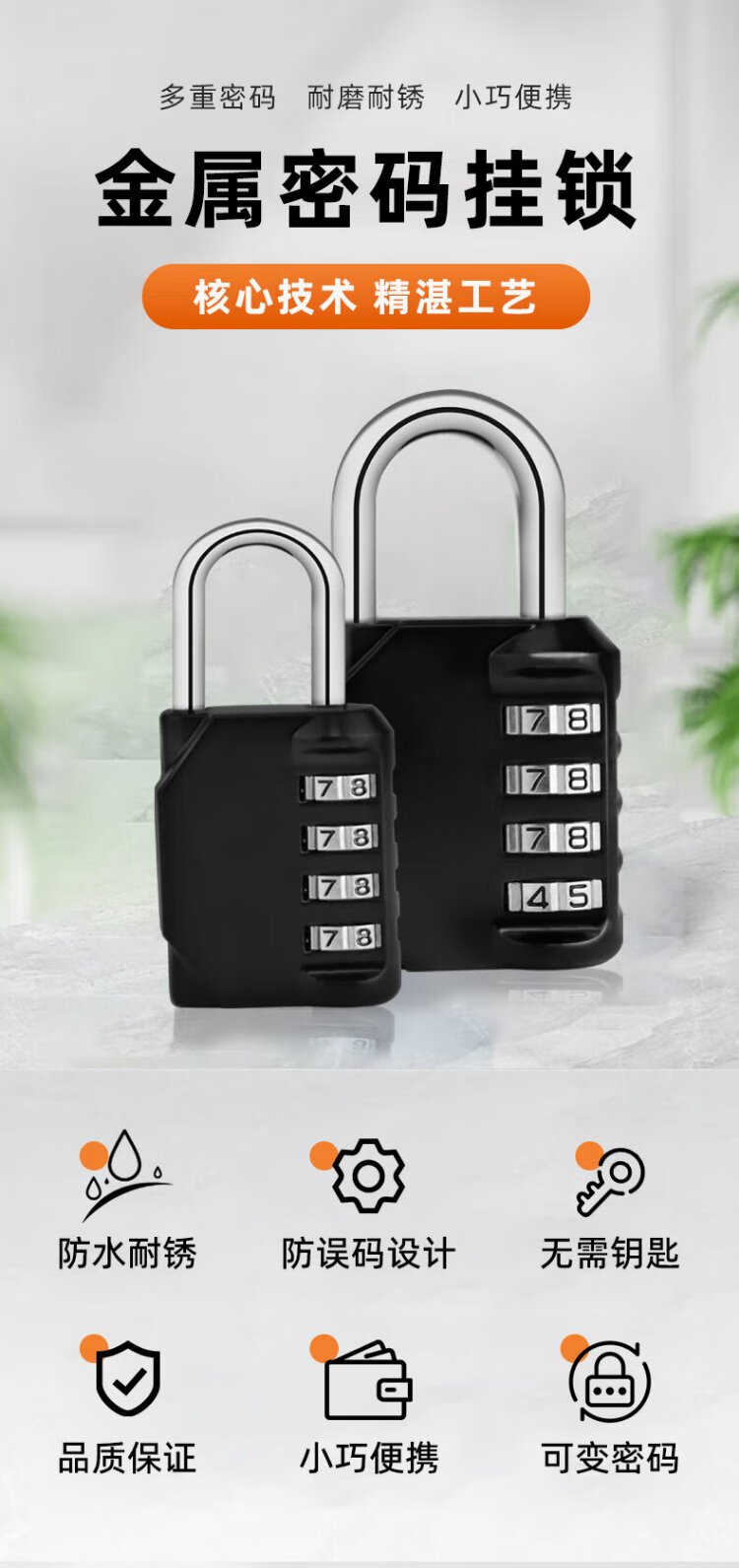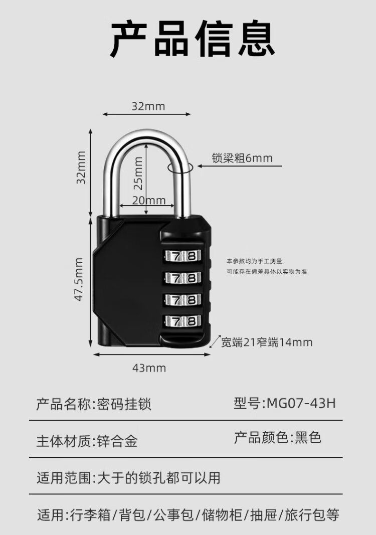 HOTUN medium password padlock waterproof password padlock four-digit password small and medium-sized padlock anti-theft padlock universal padlock MG09-32H