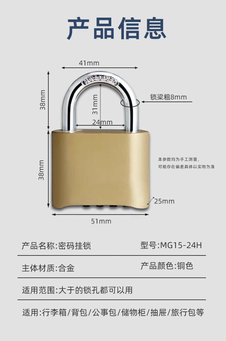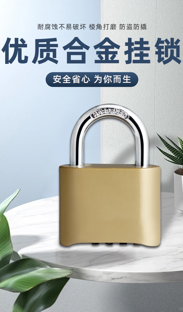 HOTUN password padlock office dormitory indoor and outdoor door lock large padlock carriage door lock anti-theft lock yellow MG15-24