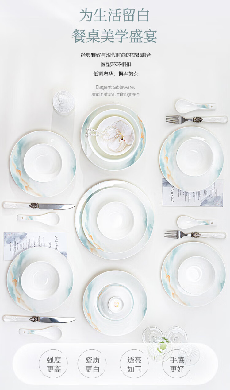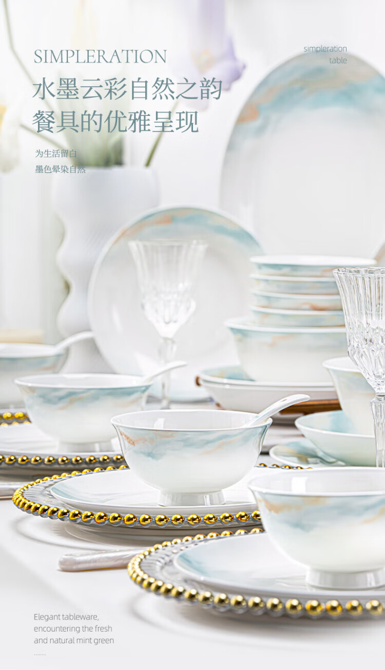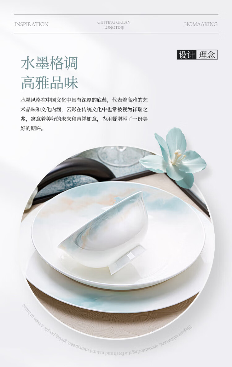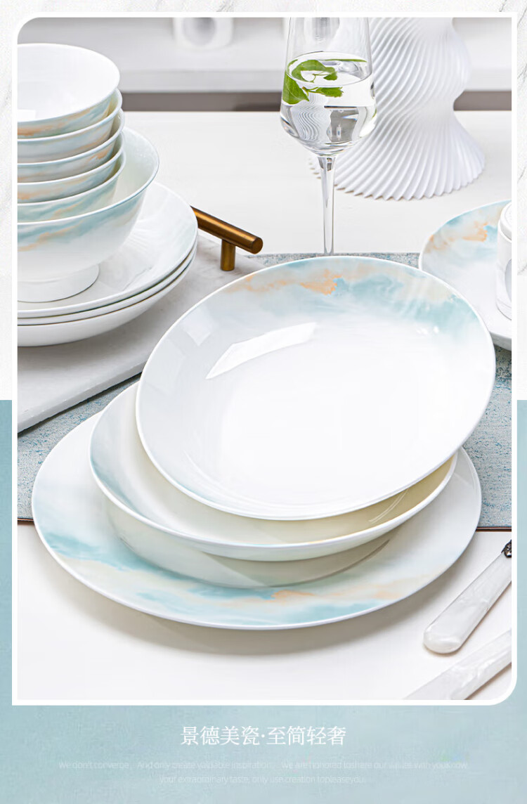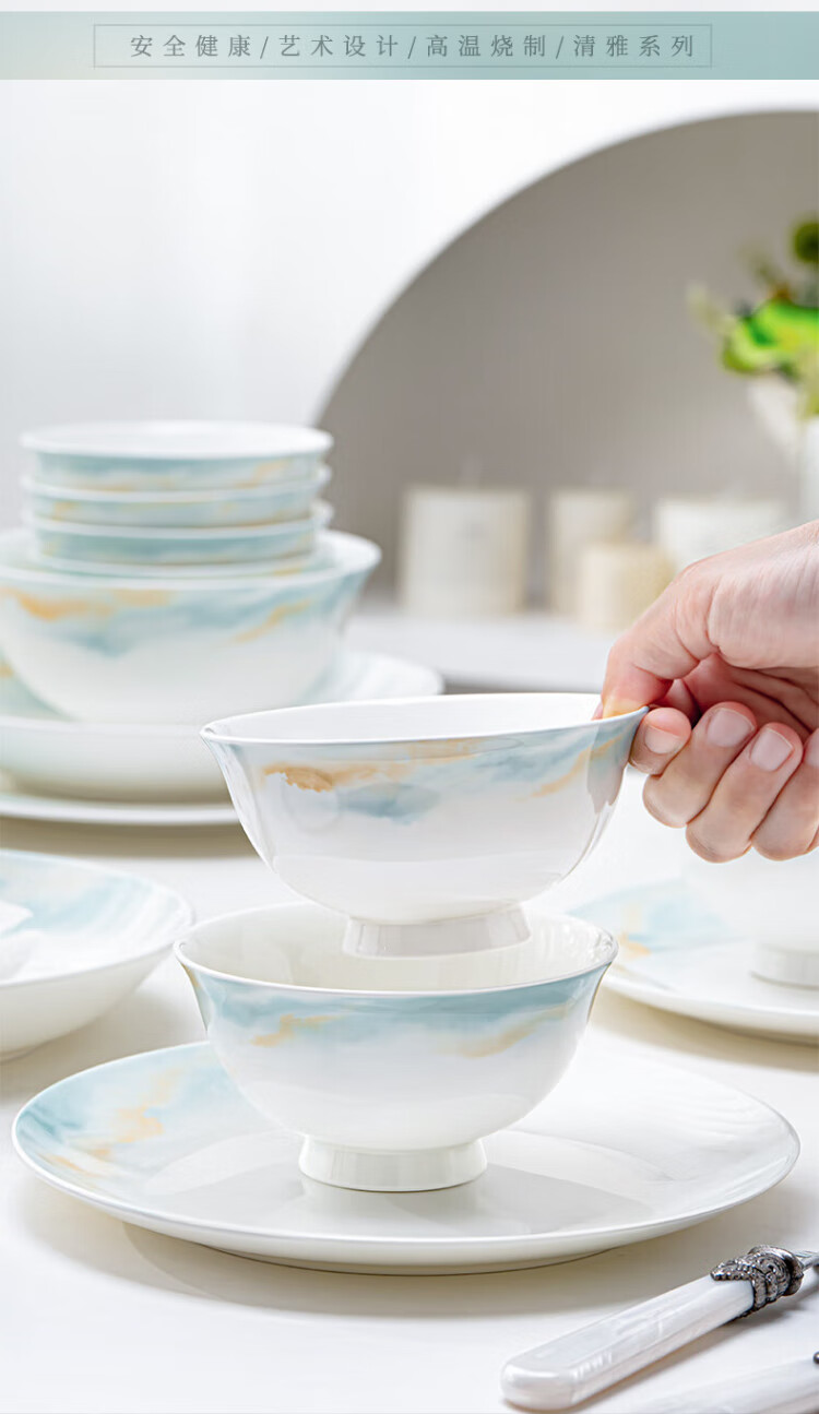 NINE CRANES bowl set 2025 new ceramic Jingdezhen modern simple tableware bowl and plate combination plate bowl household 32 pieces