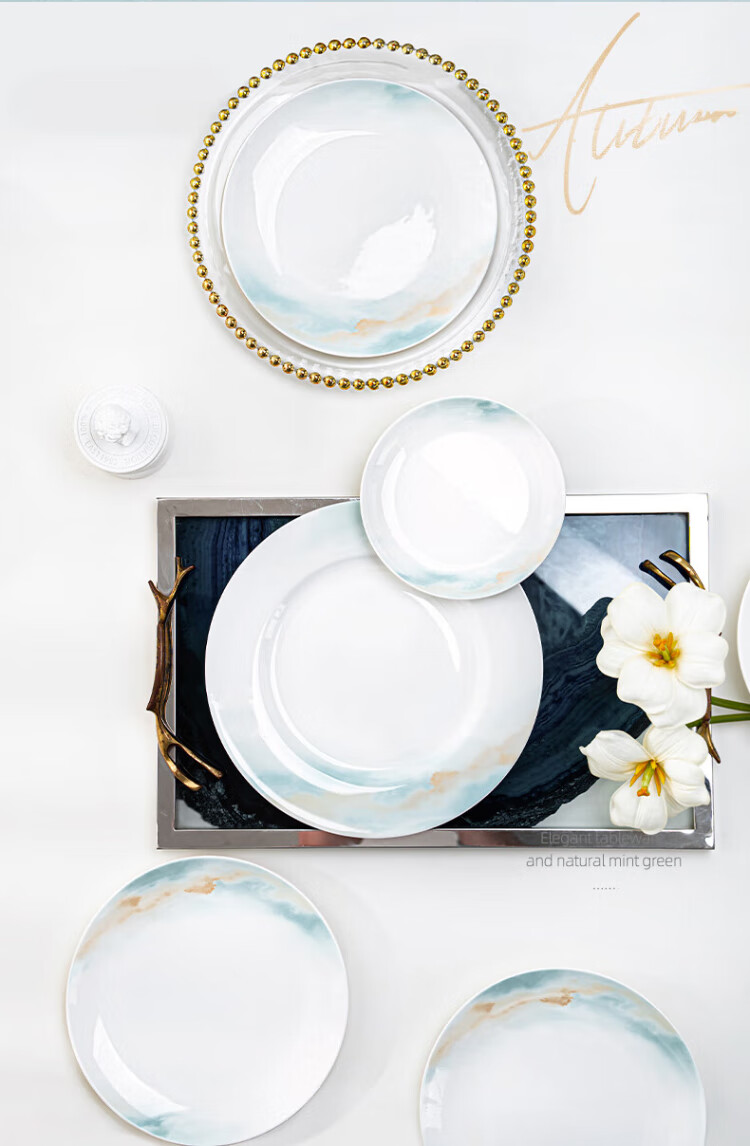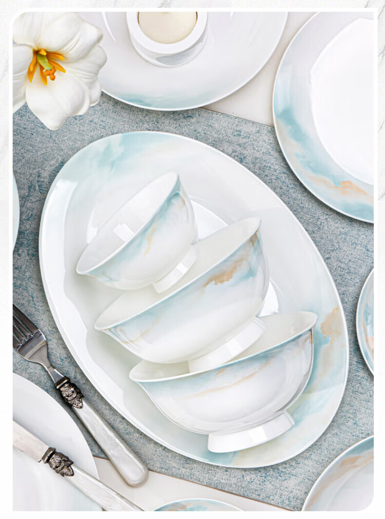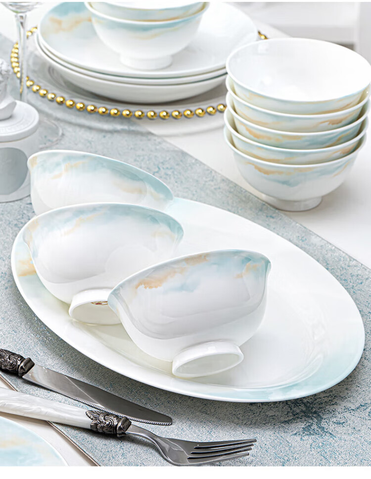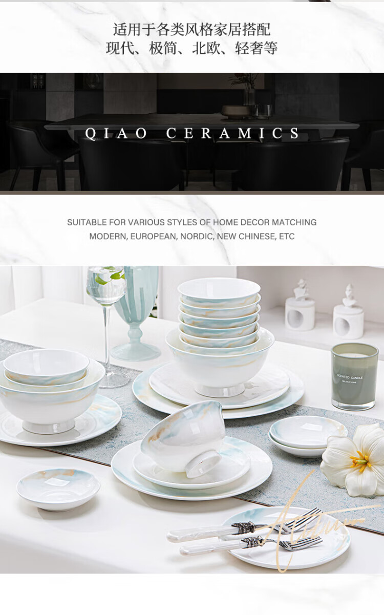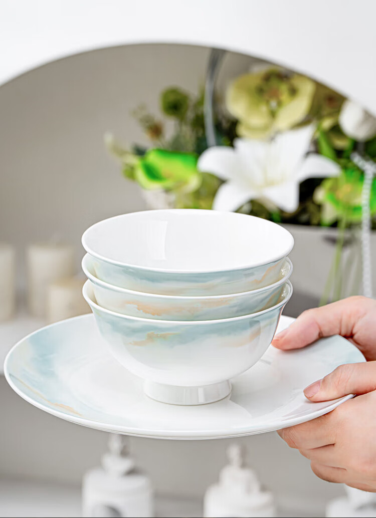 NINE CRANES bowl set 2025 new ceramic Jingdezhen modern simple tableware bowl and plate combination plate bowl household 32 pieces