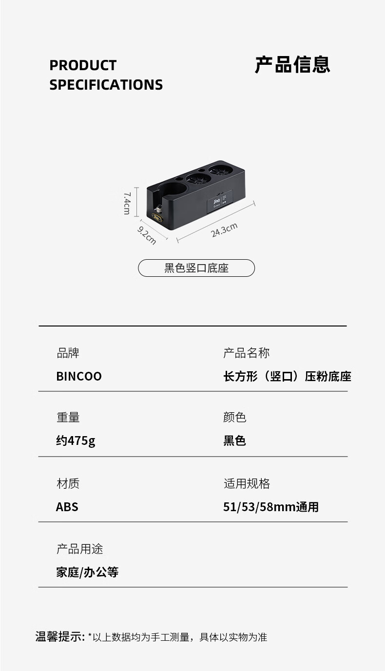 Bincoo coffee pressing powder base Italian coffee appliance pressing powder hammer household coffee machine handle filling tool