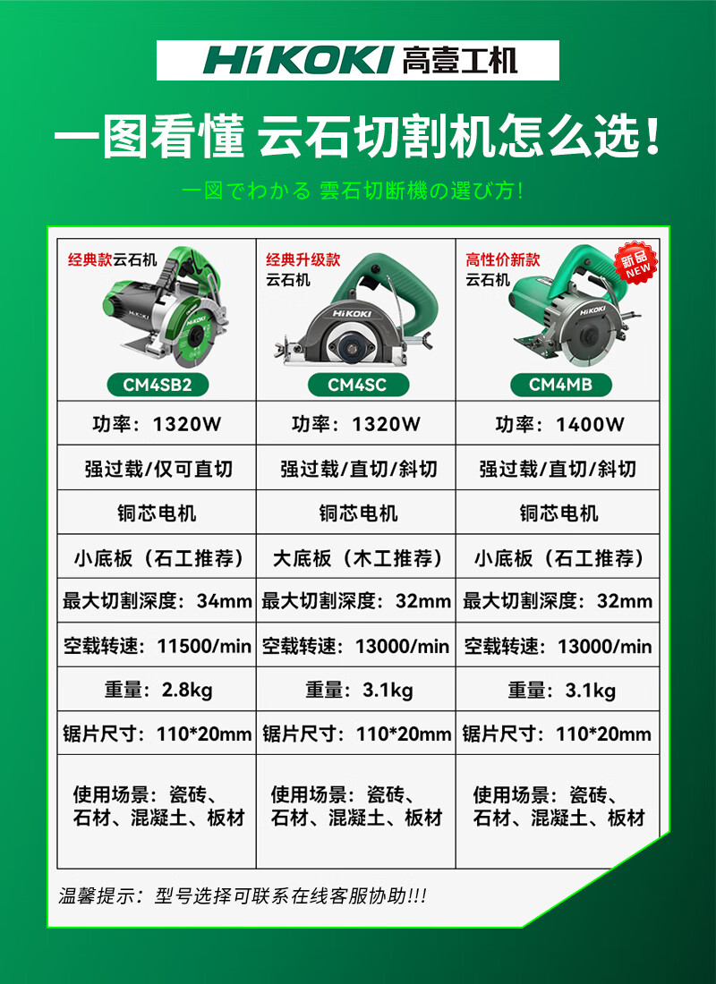 HiKOKI CM4MB marble cutting machine slotting machine 1400W can bevel cut stone tile concrete multi-functional cutting machine