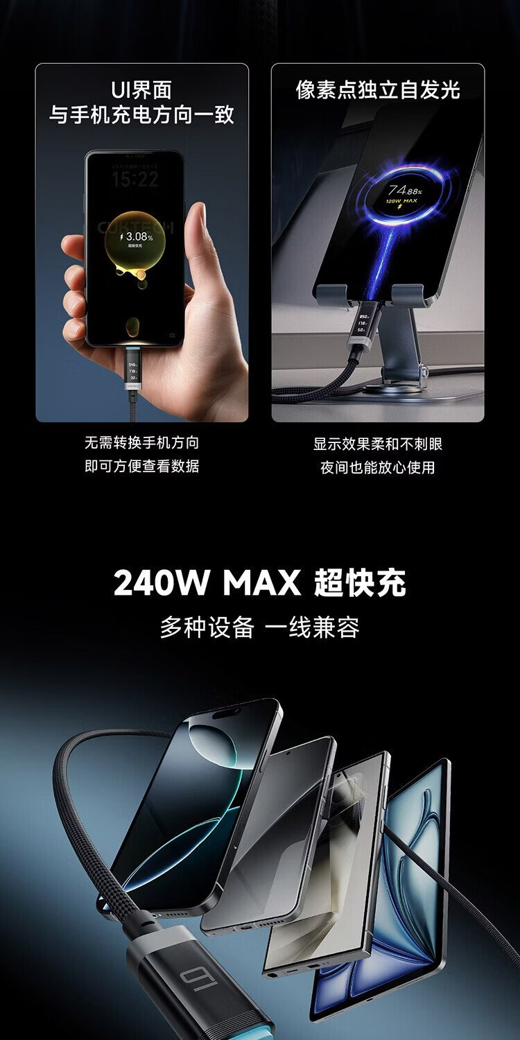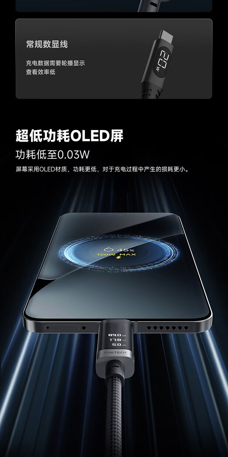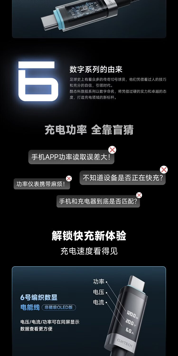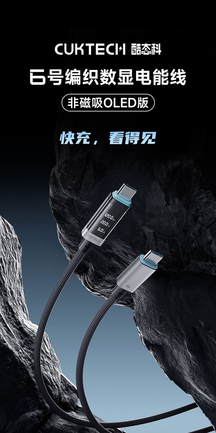 CUKTECH No. 6 braided digital display power cable 240W data cable type-C charging cable 6A fast charging suitable for Apple 17/Xiaomi/Huawei mobile phones, tablets and notebooks 2m