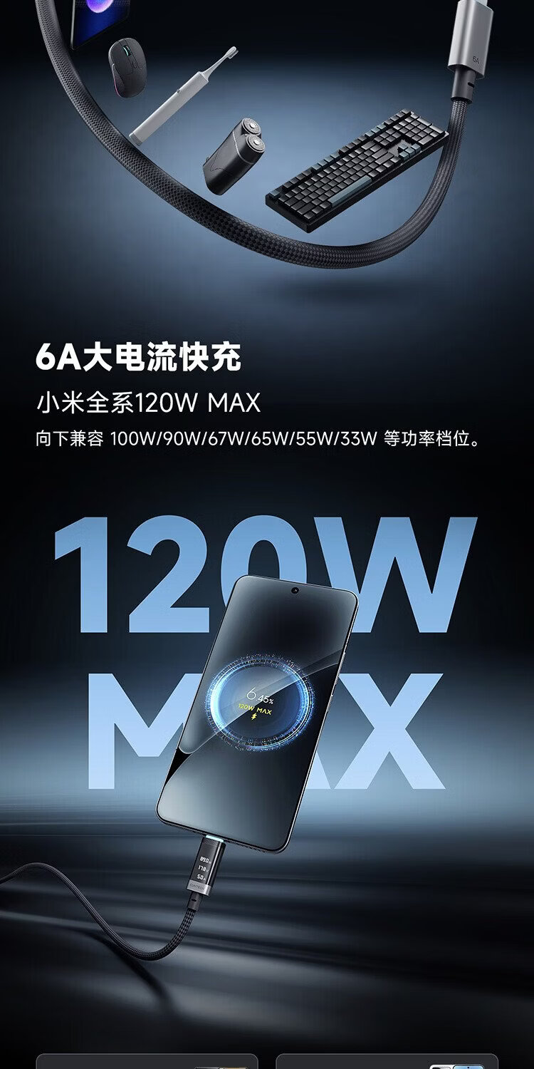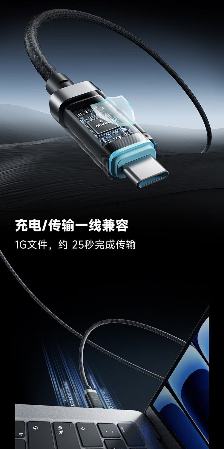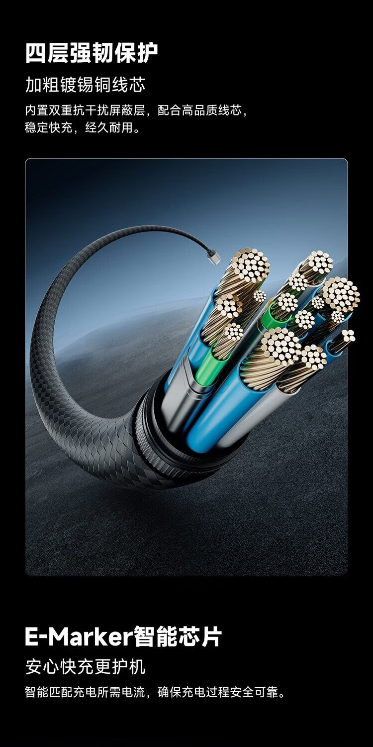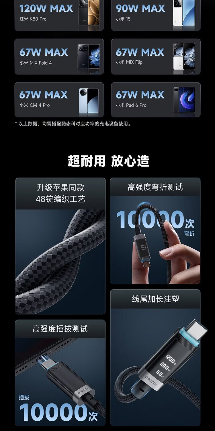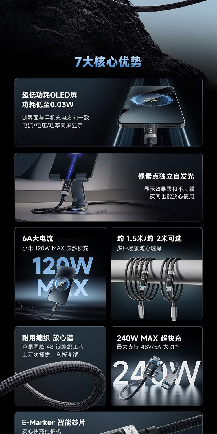CUKTECH No. 6 braided digital display power cable 240W data cable type-C charging cable 6A fast charging suitable for Apple 17/Xiaomi/Huawei mobile phones, tablets and notebooks 2m