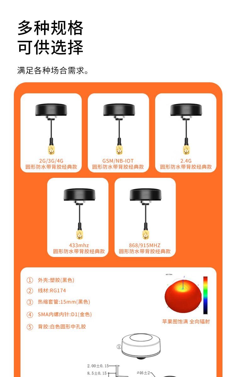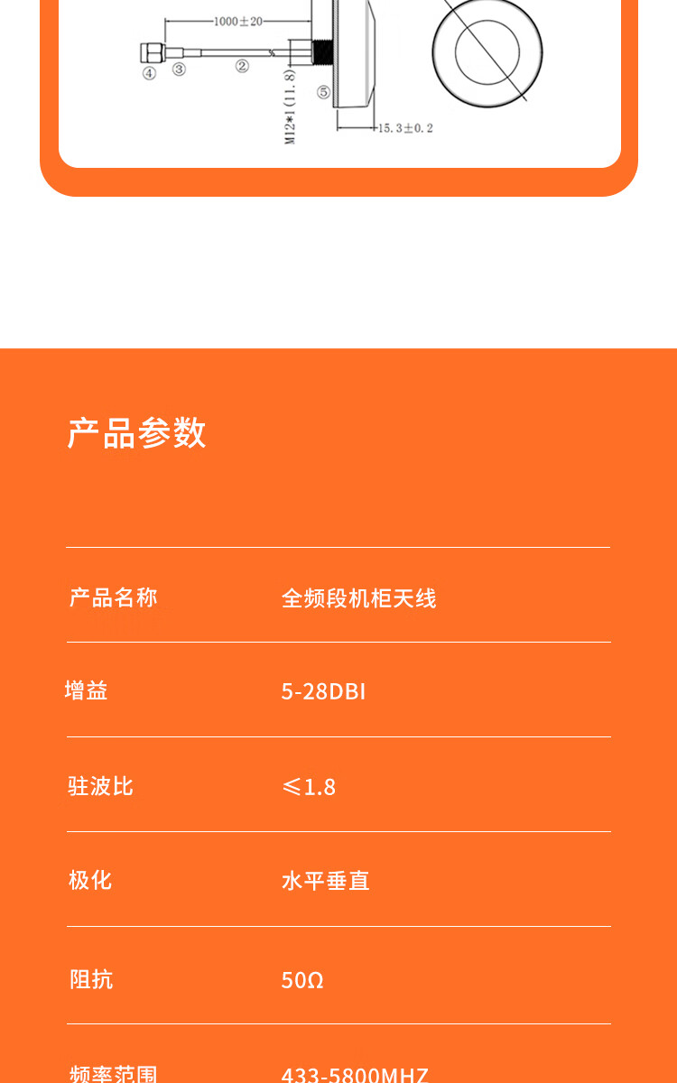 Rentian 2G/3G/4G outdoor waterproof antenna mushroom head cabinet antenna circular gain 5-28dbi/SMA inner screw inner needle/0.5m RT-YTX1-05