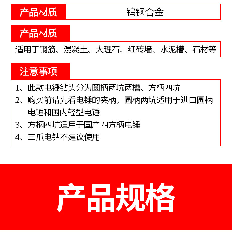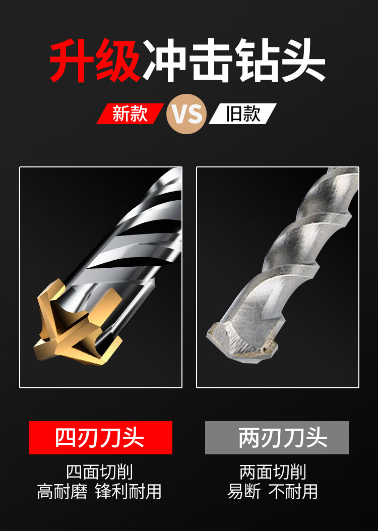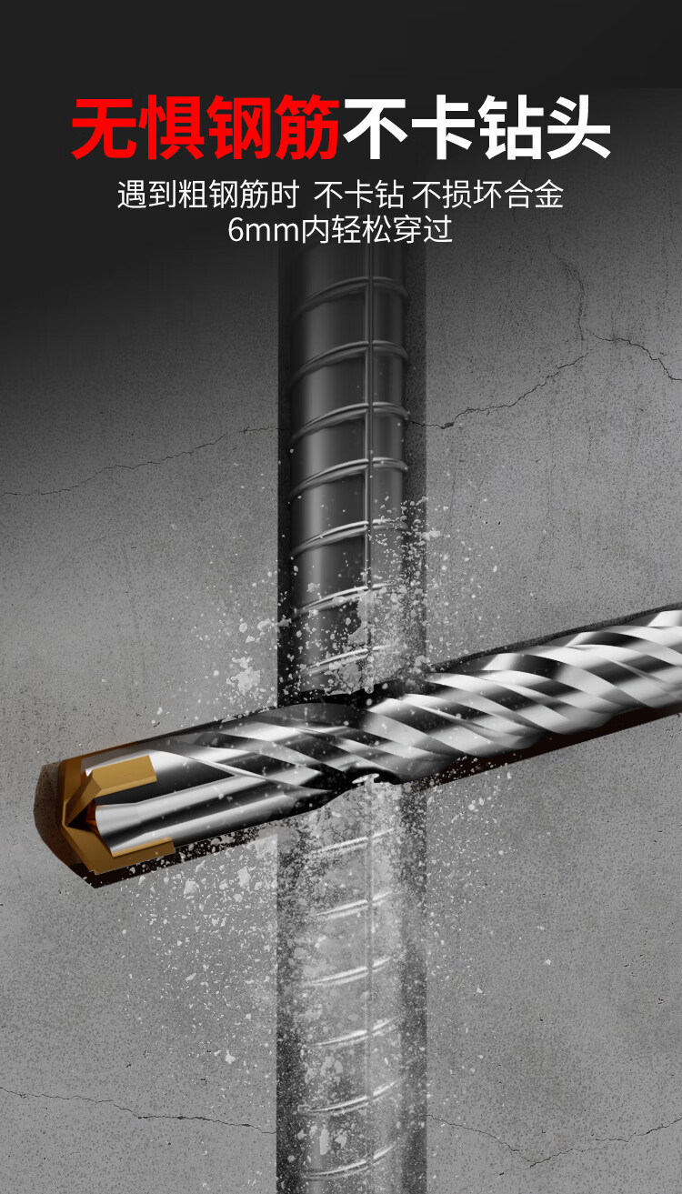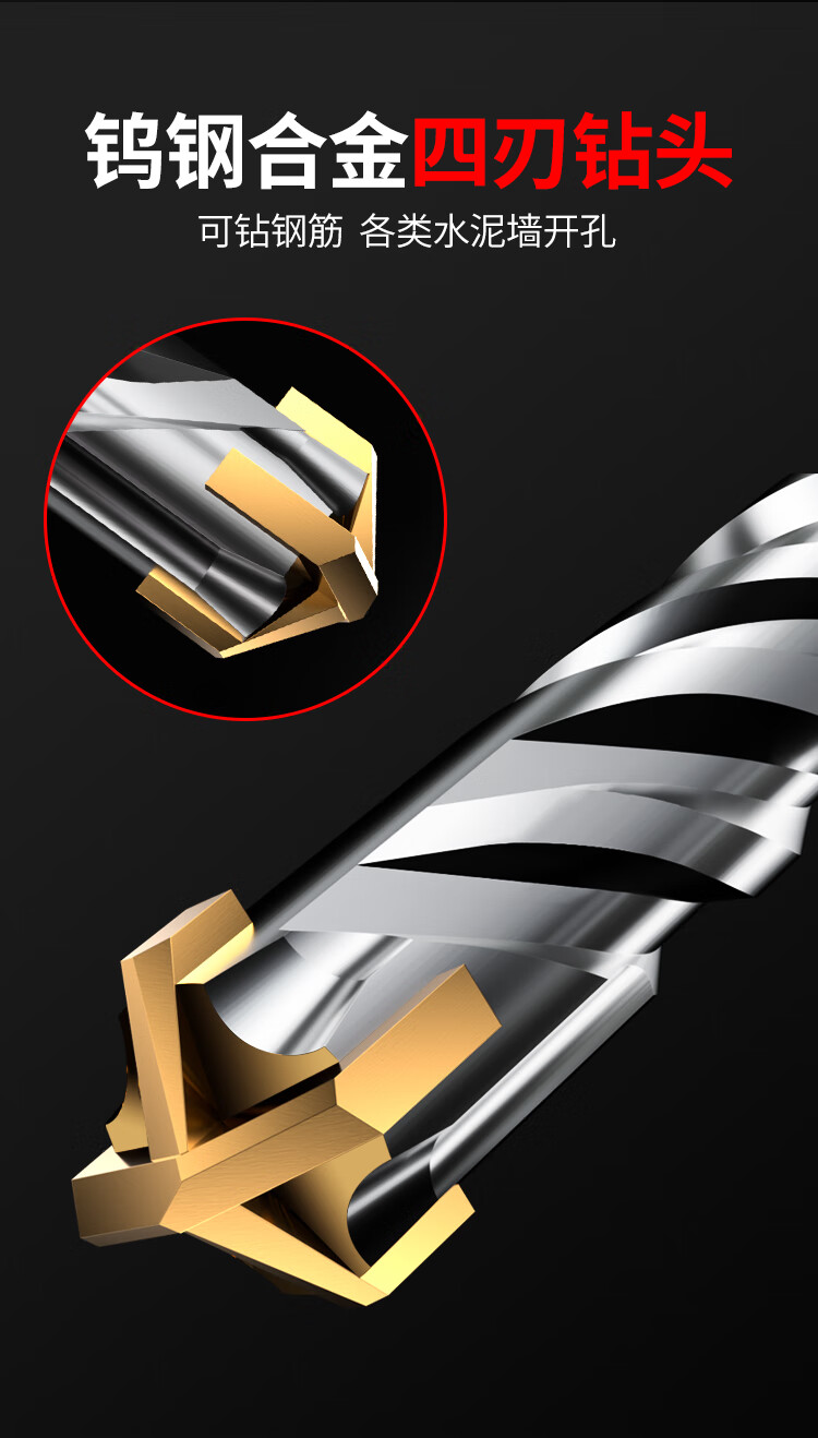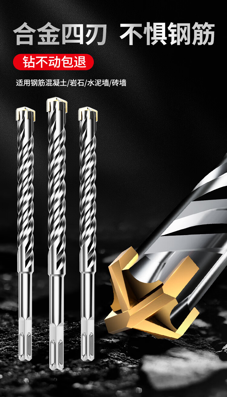 Lichang cross electric hammer drill bit lengthened concrete four-pit wall penetration four-edged impact drill bit round handle 12*160mm