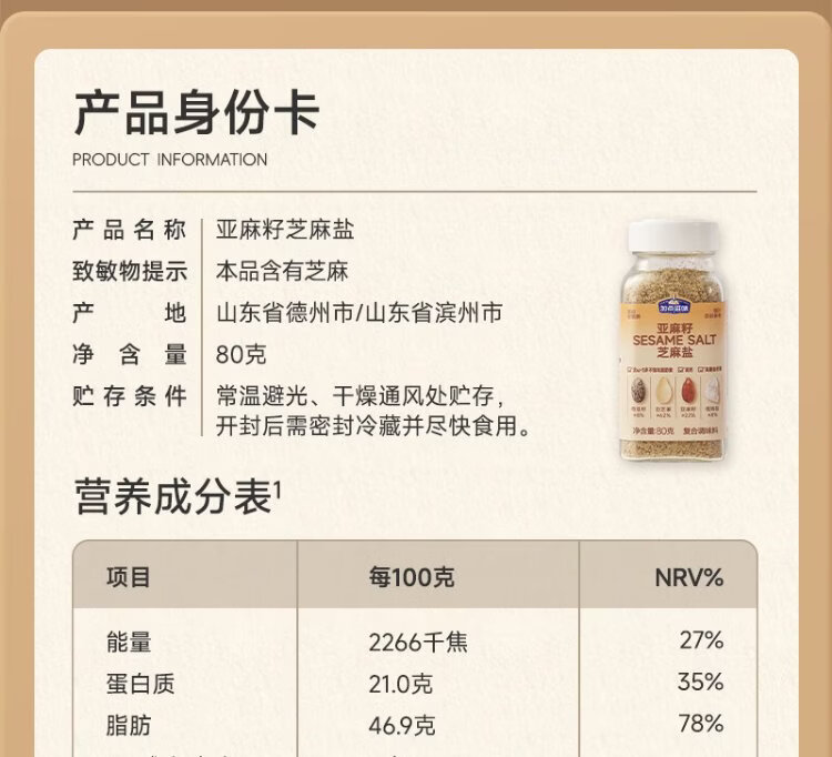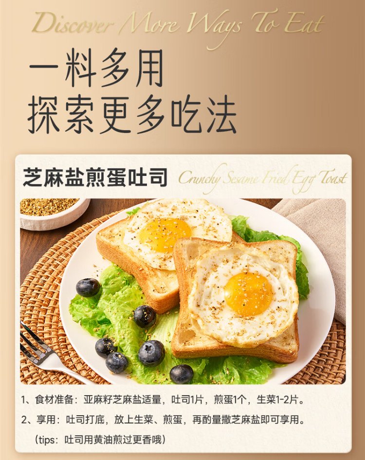 Add some flaxseed, sesame salt, 80g, high calcium, high dietary fiber, versatile cold dish seasoning, noodles, chia seeds