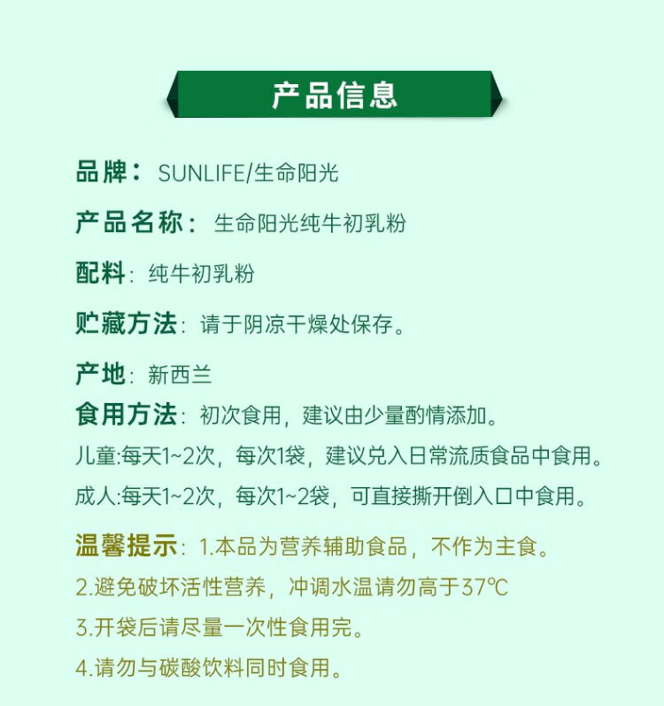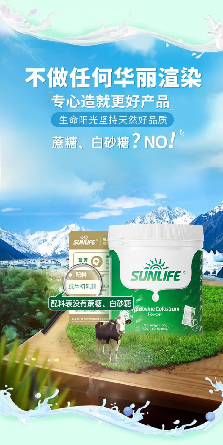 Sunshine of Life Pure Bovine Colostrum Powder 60 Bags Immune Globulin Powder Children's Postoperative Adult Confinement Chemotherapy Elderly Nutrition New Zealand New Zealand Pure Bovine Colostrum 60 Bags*1 Can (Additional 9 Bags)