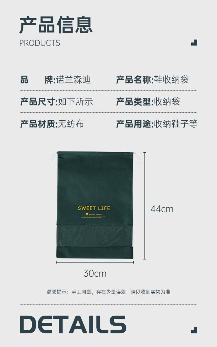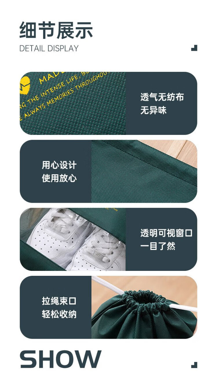 Nolan Sendi non-woven shoe bag storage bag dustproof and moisture-proof drawstring pocket student dormitory organizing shoe bag 5 pieces