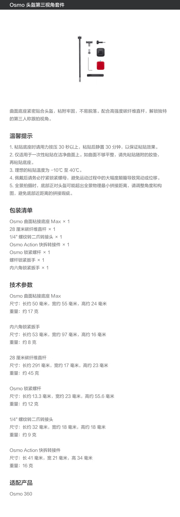 DJI Osmo Helmet Third View Kit Osmo 360 Accessories