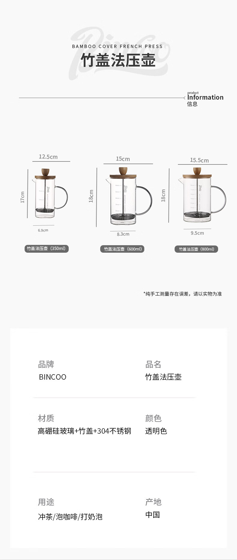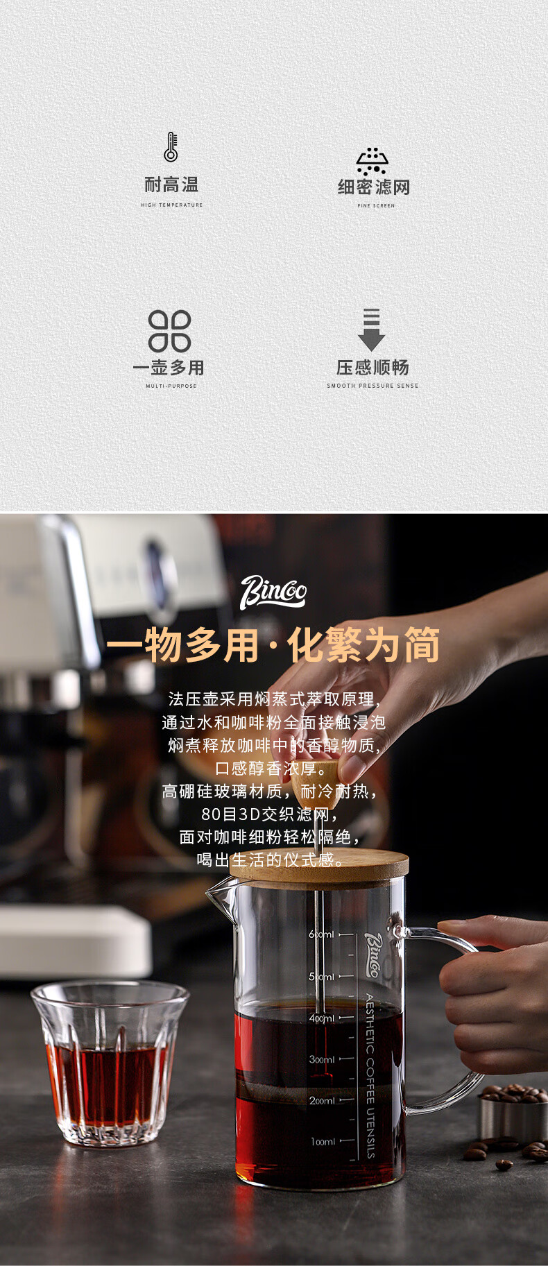 Bincoo coffee hand brewing pot household coffee filter set glass milk foaming coffee French press pot