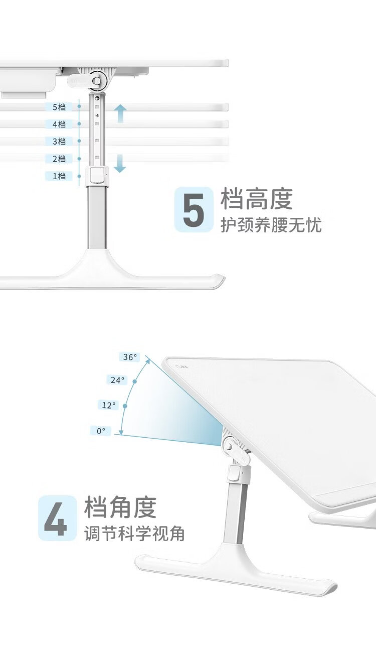 Sai Whale K2R computer desk bed table with book clip lift folding table reading study laptop lap table office desk