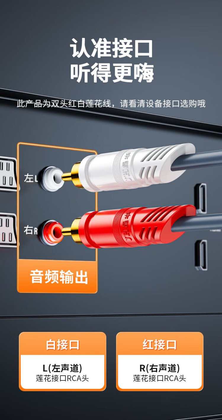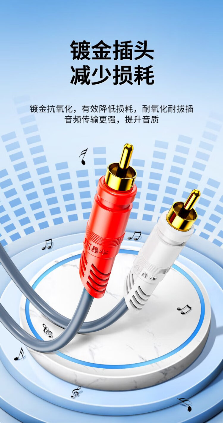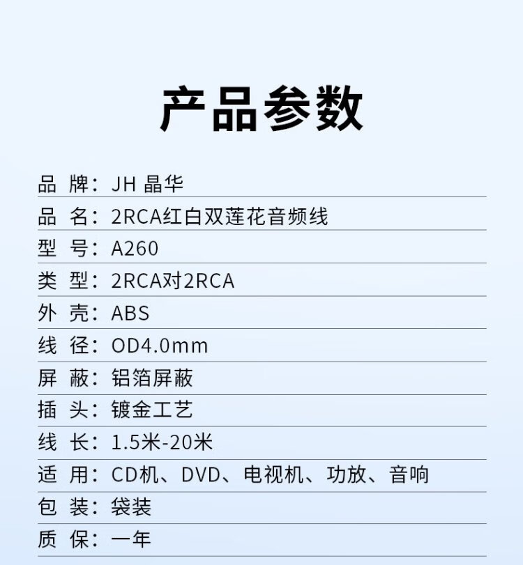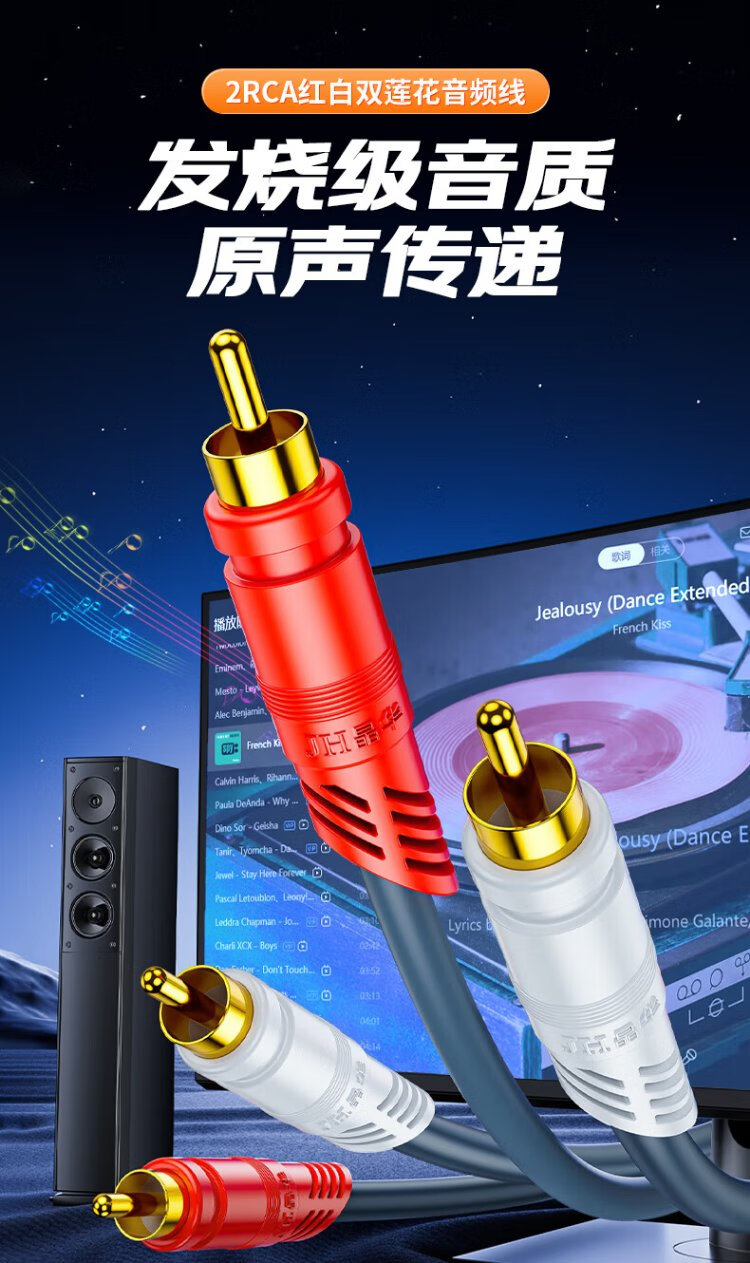 Jinghua double lotus head audio cable 2RCA male to male two to two red and white AV audio signal cable DVD computer TV connected to audio box amplifier cable 1.5 meters A260E