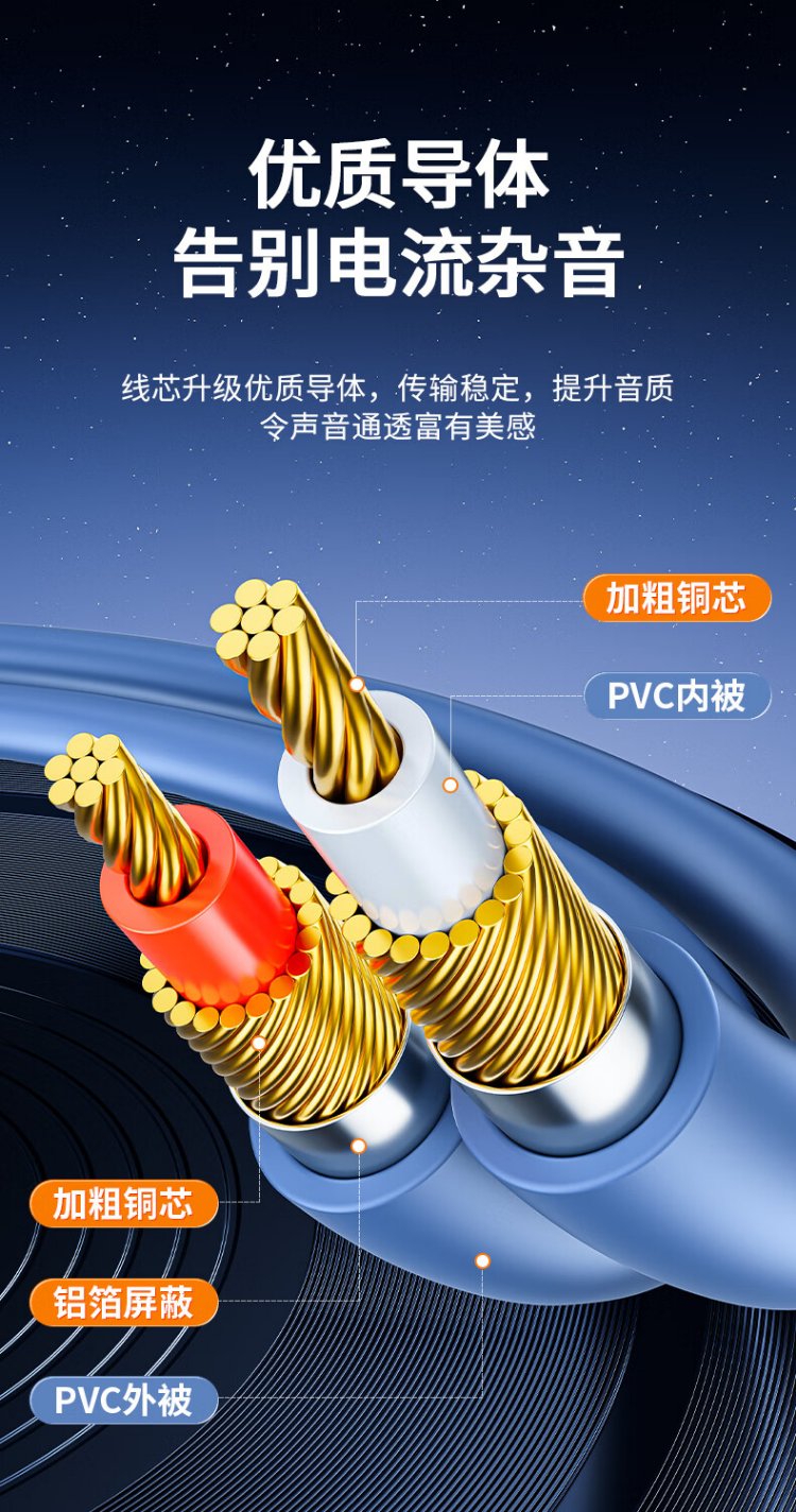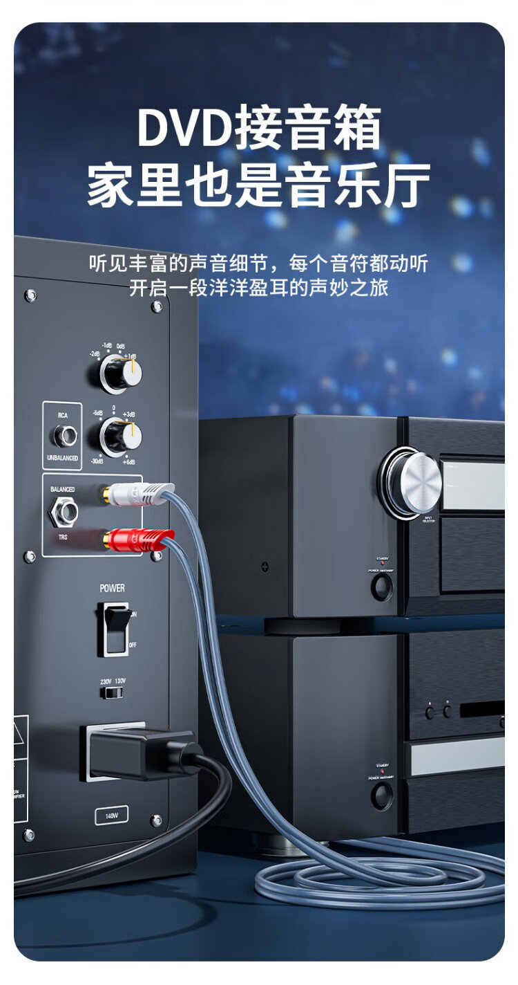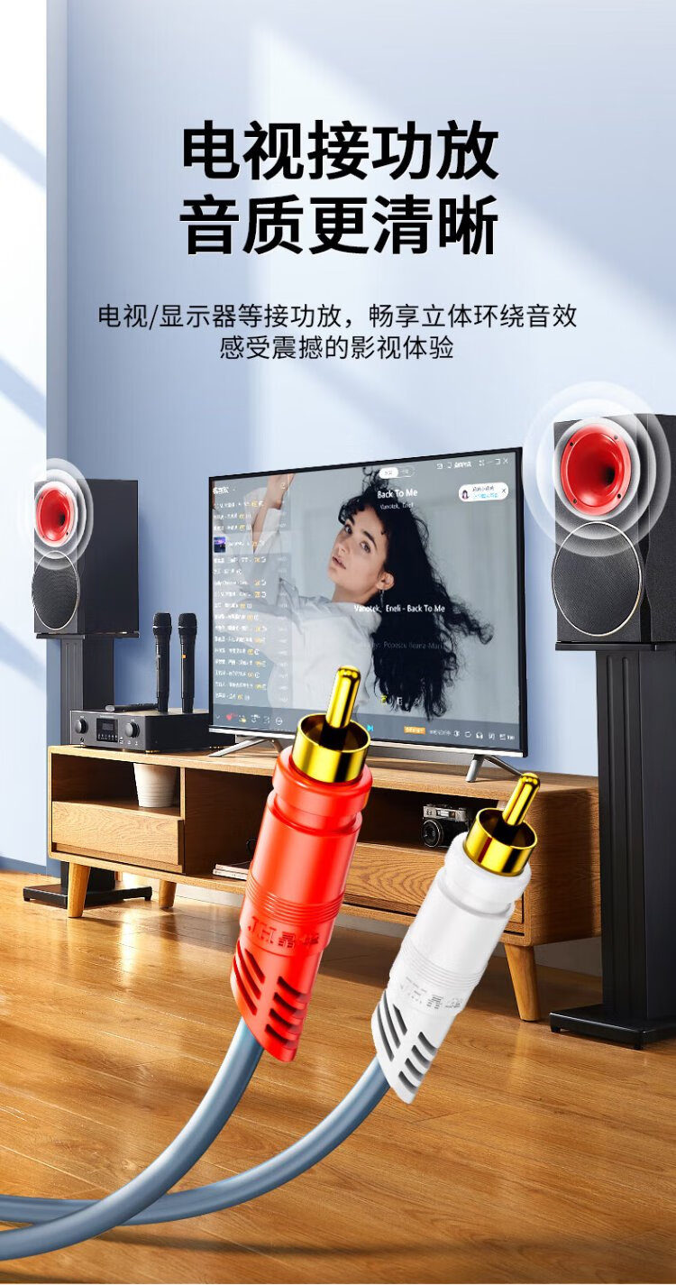 Jinghua double lotus head audio cable 2RCA male to male two to two red and white AV audio signal cable DVD computer TV connected to audio box amplifier cable 1.5 meters A260E