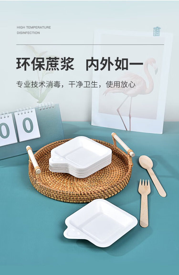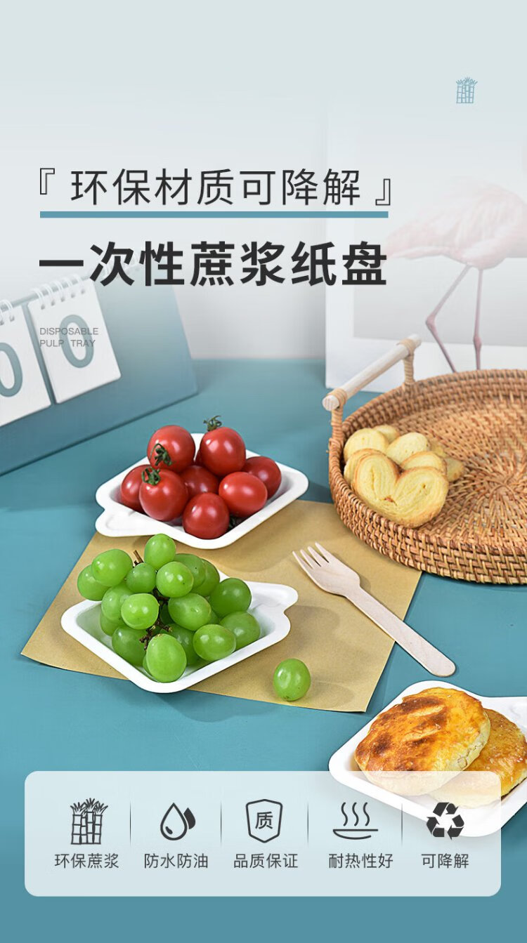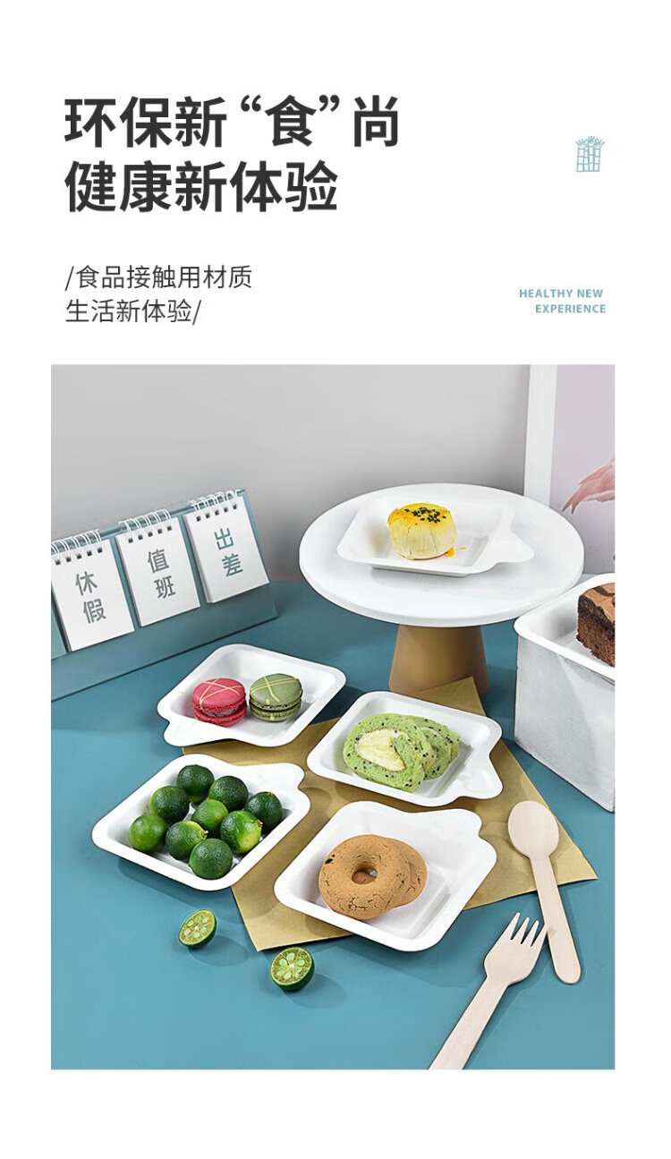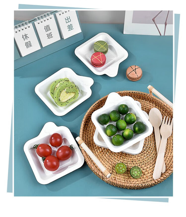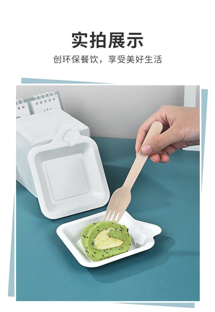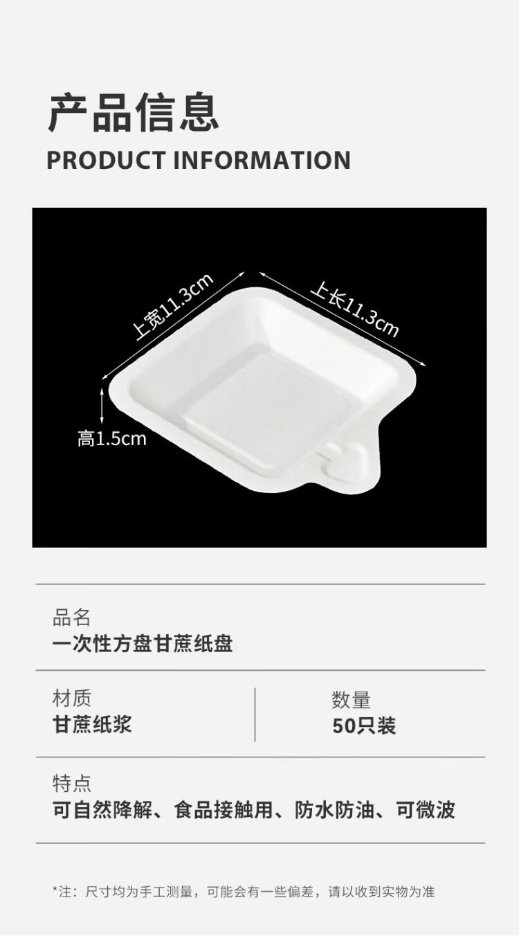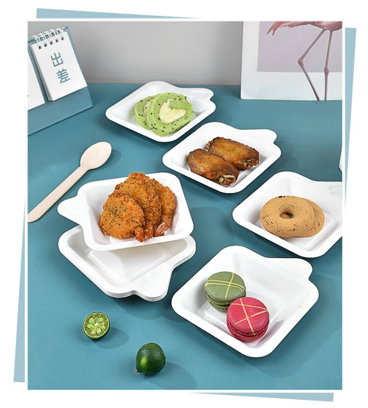Temeiju disposable plate cake plate outdoor barbecue picnic plate sugarcane paper plate dessert tray 11.3cm 50 pieces