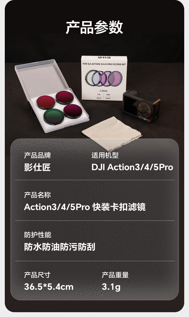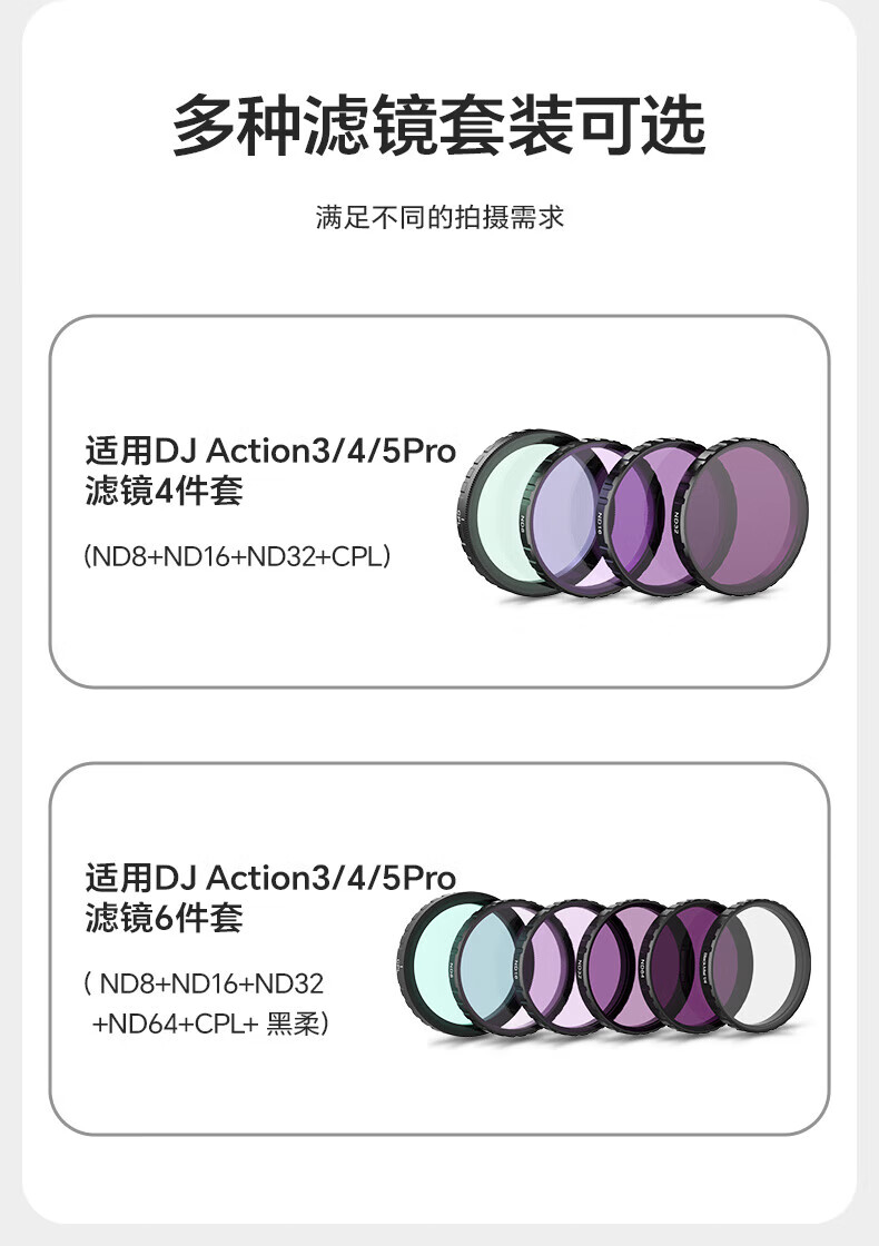 Shadowsmith is suitable for Action4/5Pro filter ND lens sports camera filter set anti-light damage UV polarization CPL black soft filter set six-piece set ND*4+CPL+black soft
