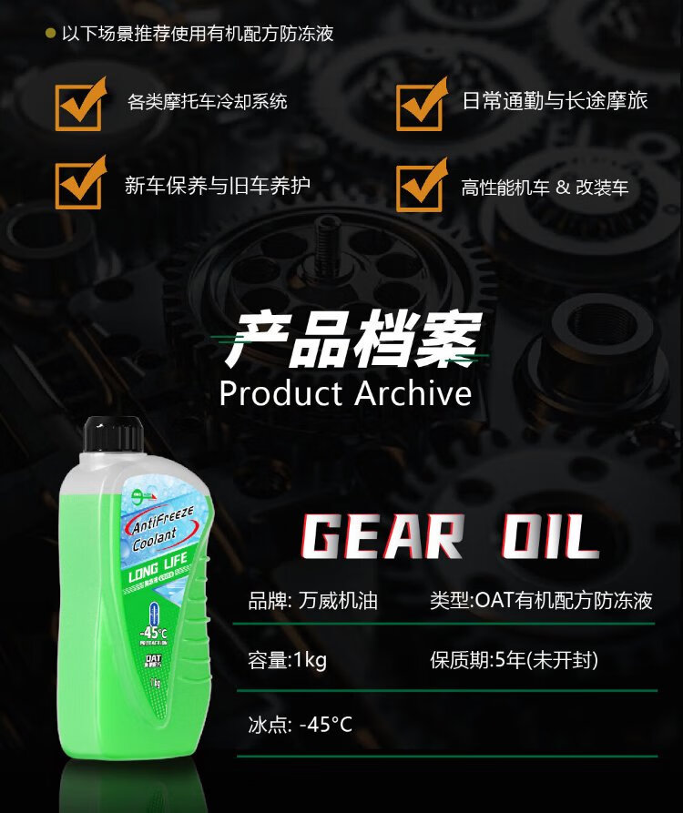 Wanwei engine oil motorcycle antifreeze -45 antifreeze OAT organic long-lasting coolant northern special spring green
