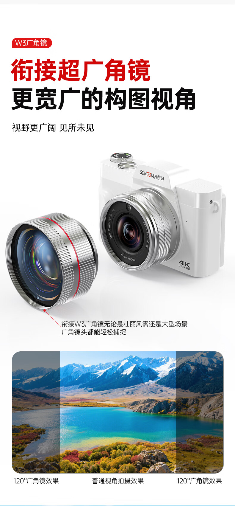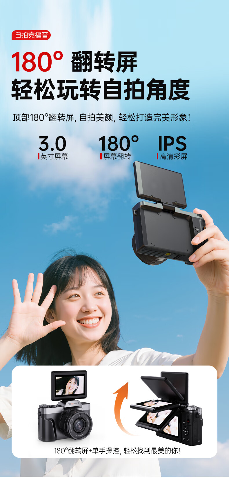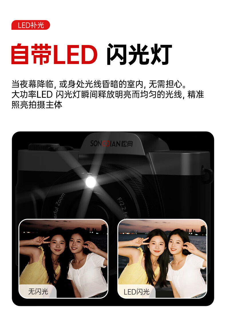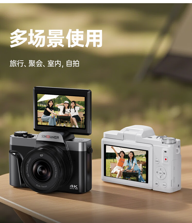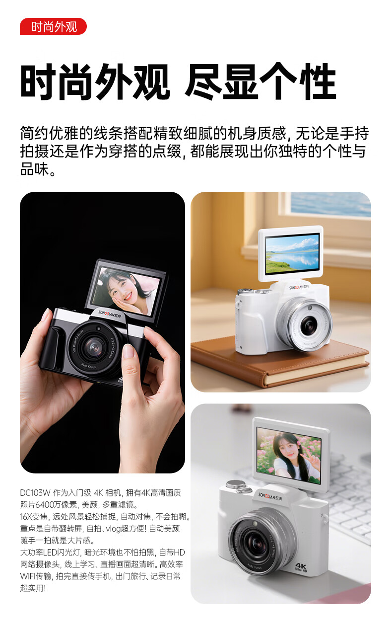 SONGDIAN digital camera 64 million pixels flip screen selfie vlog entry-level campus high-definition mirrorless camera photo travel DC103W white 128G memory