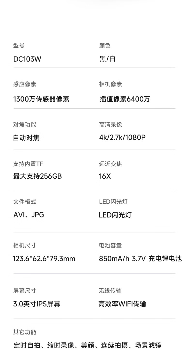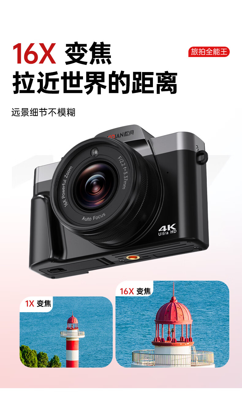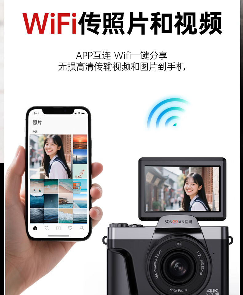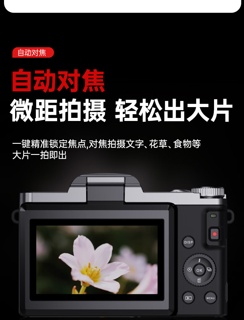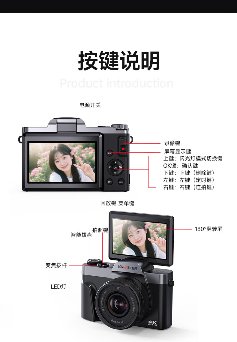 SONGDIAN digital camera 64 million pixels flip screen selfie vlog entry-level campus high-definition mirrorless camera photo travel DC103W white 128G memory