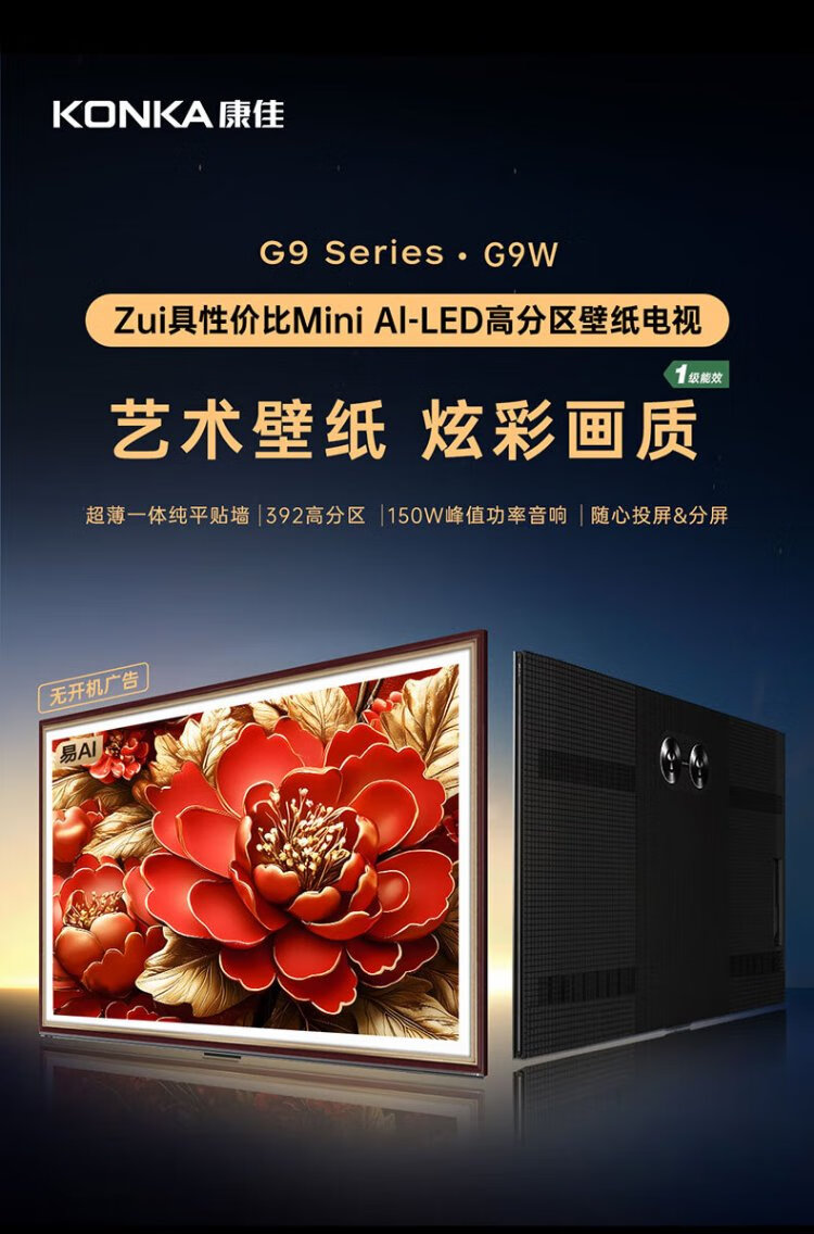 Konka Wallpaper TV 65G9W 65-inch TV MiniLED ultra-thin smart tablet 392 partitions 288Hz high brush DeepSeek home appliances state subsidies