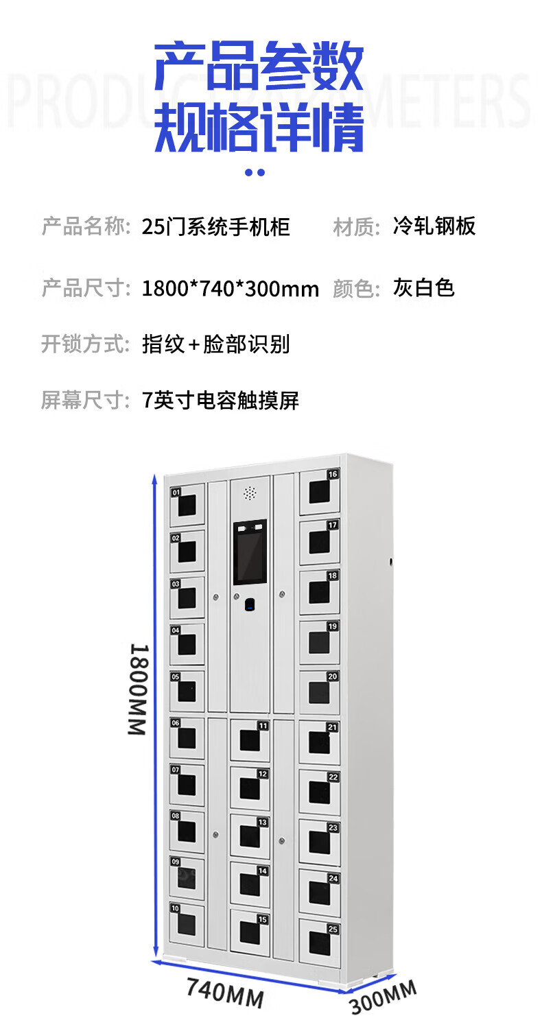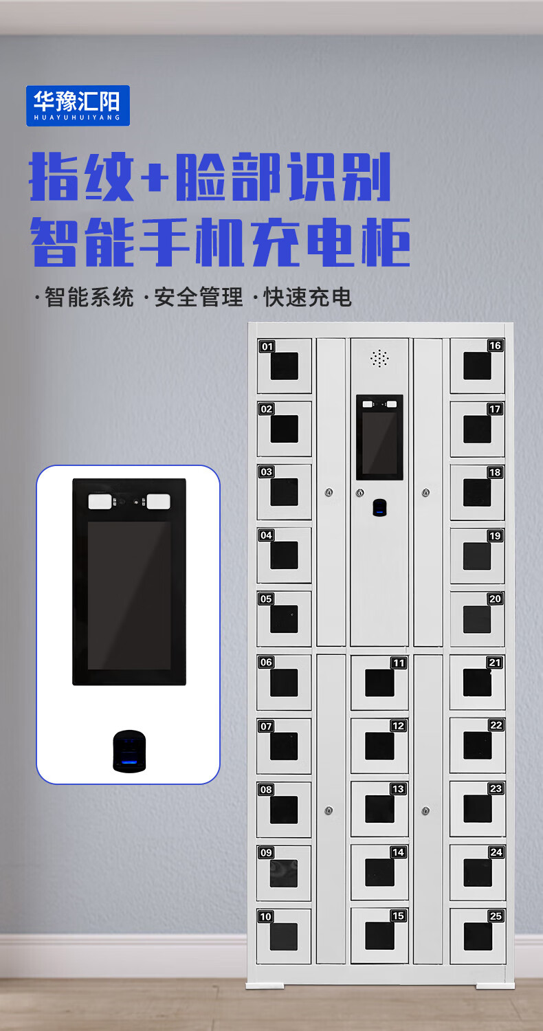 Huayu Huiyang 25-door system mobile phone cabinet shift cabinet intelligent dual authentication time management face recognition + fingerprint charging on-site detection model HY-DSJG14
