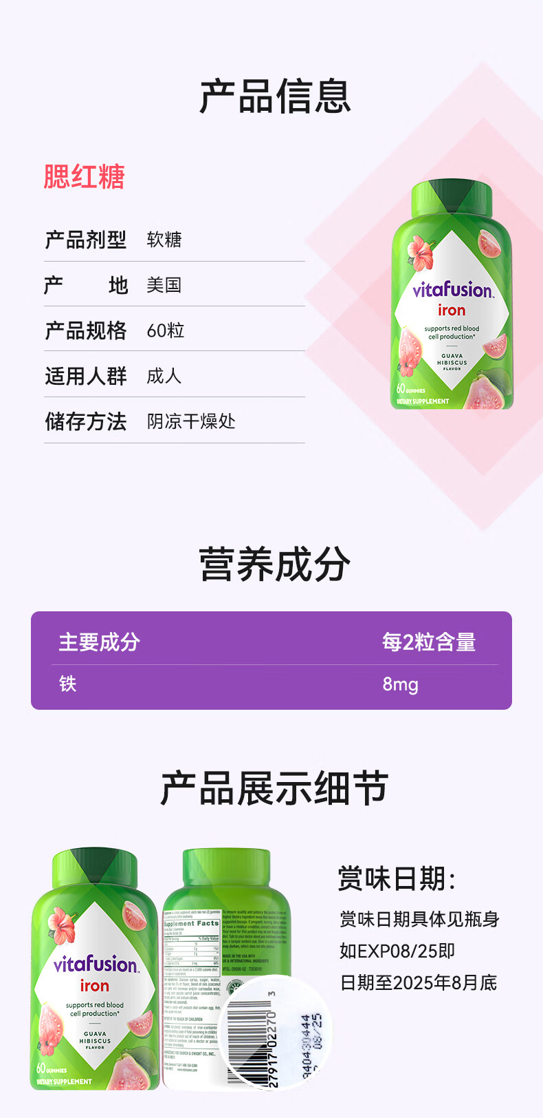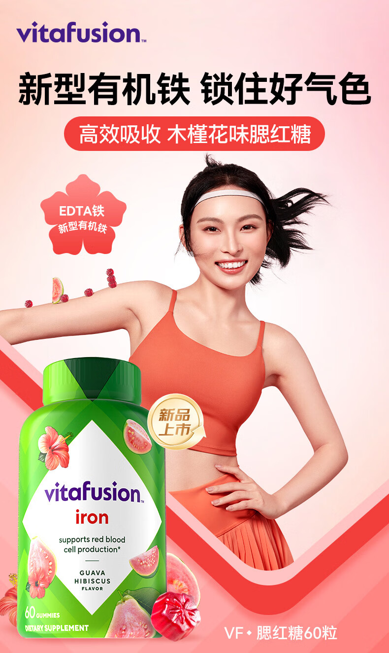 Vitafusion Iron-rich Gummies Iron Vitamins for Women with Anemia 60 Tablets*2