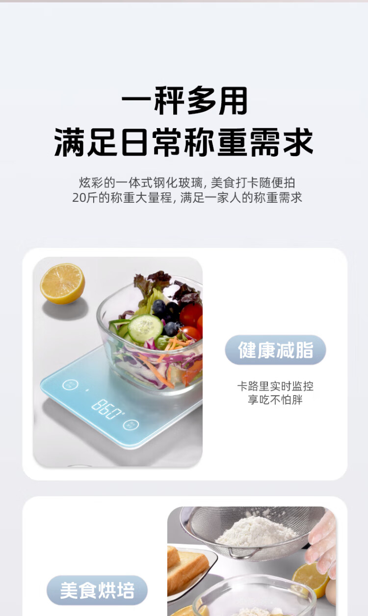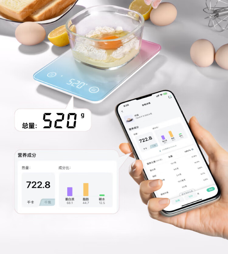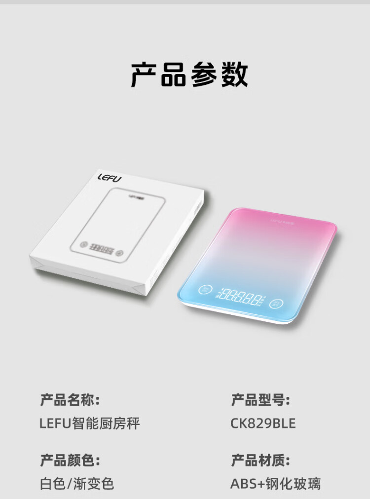 LEFU smart kitchen scale, electronic weighing scale, high-precision household nutrition scale, small gram-scale baked food scale, Bluetooth connection smart APP to calculate food calories