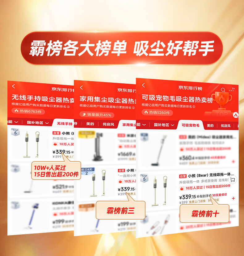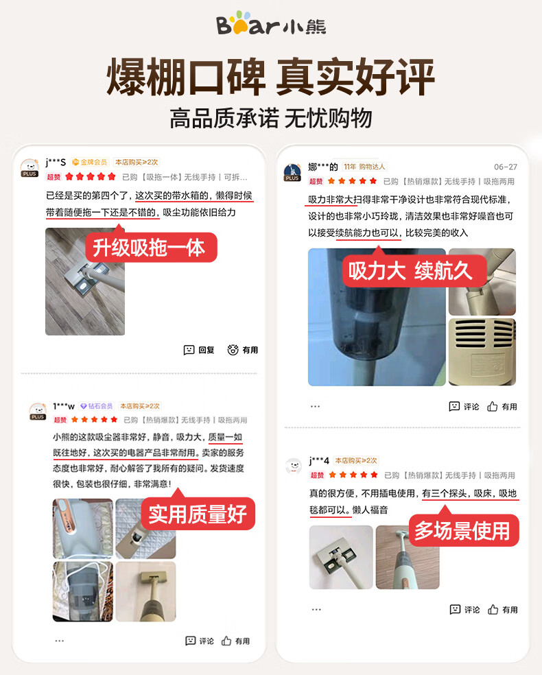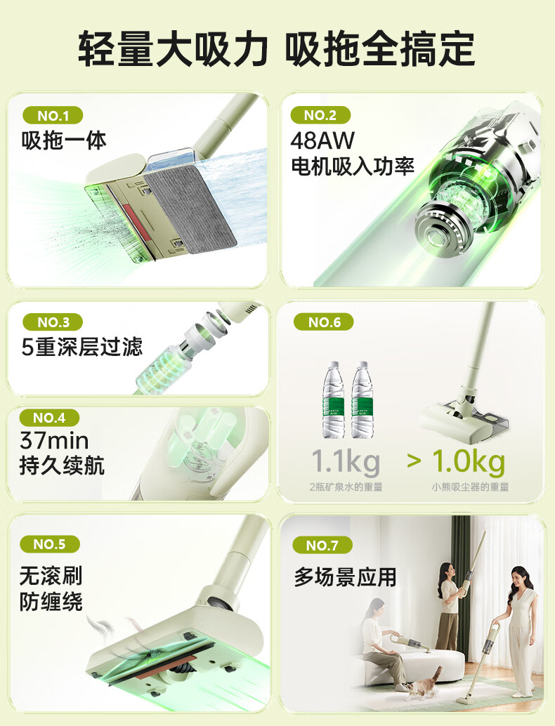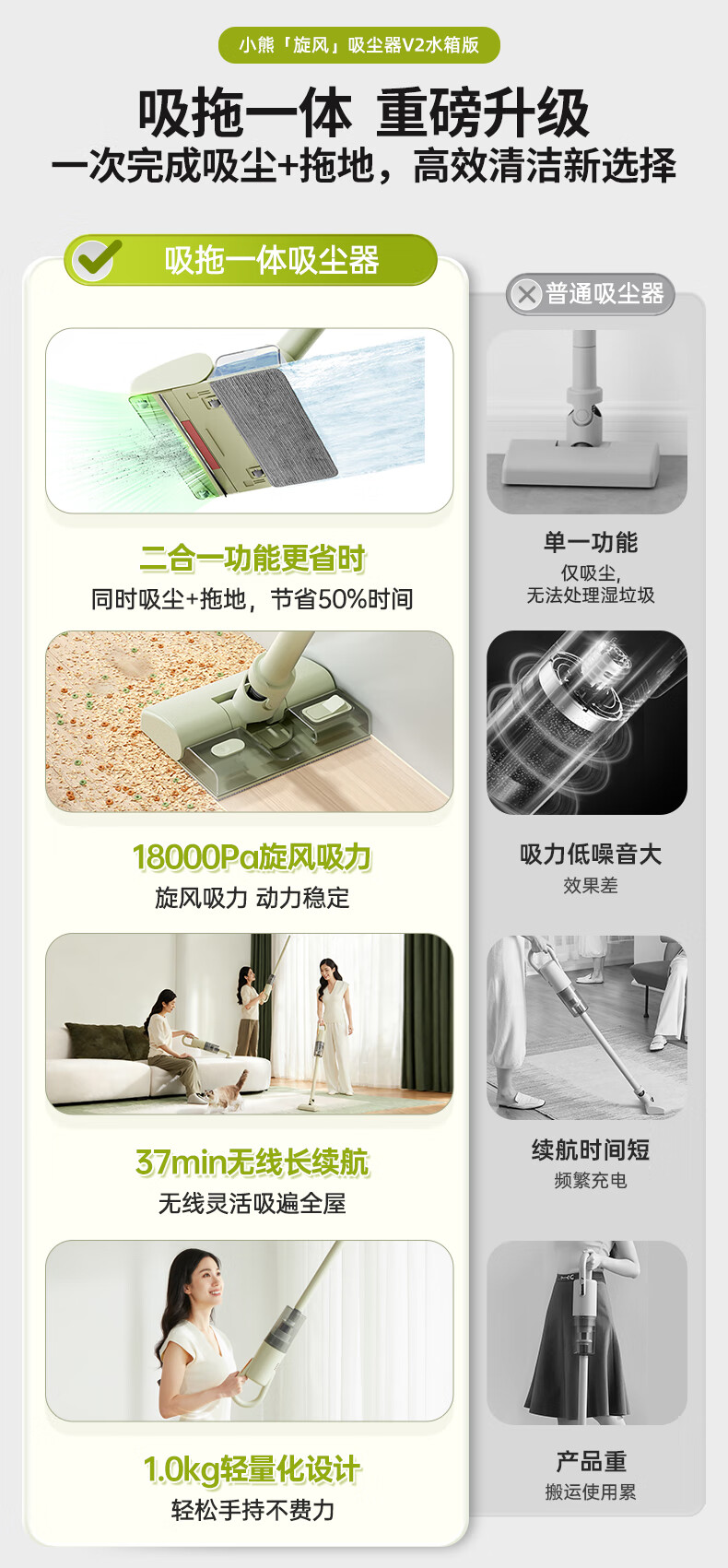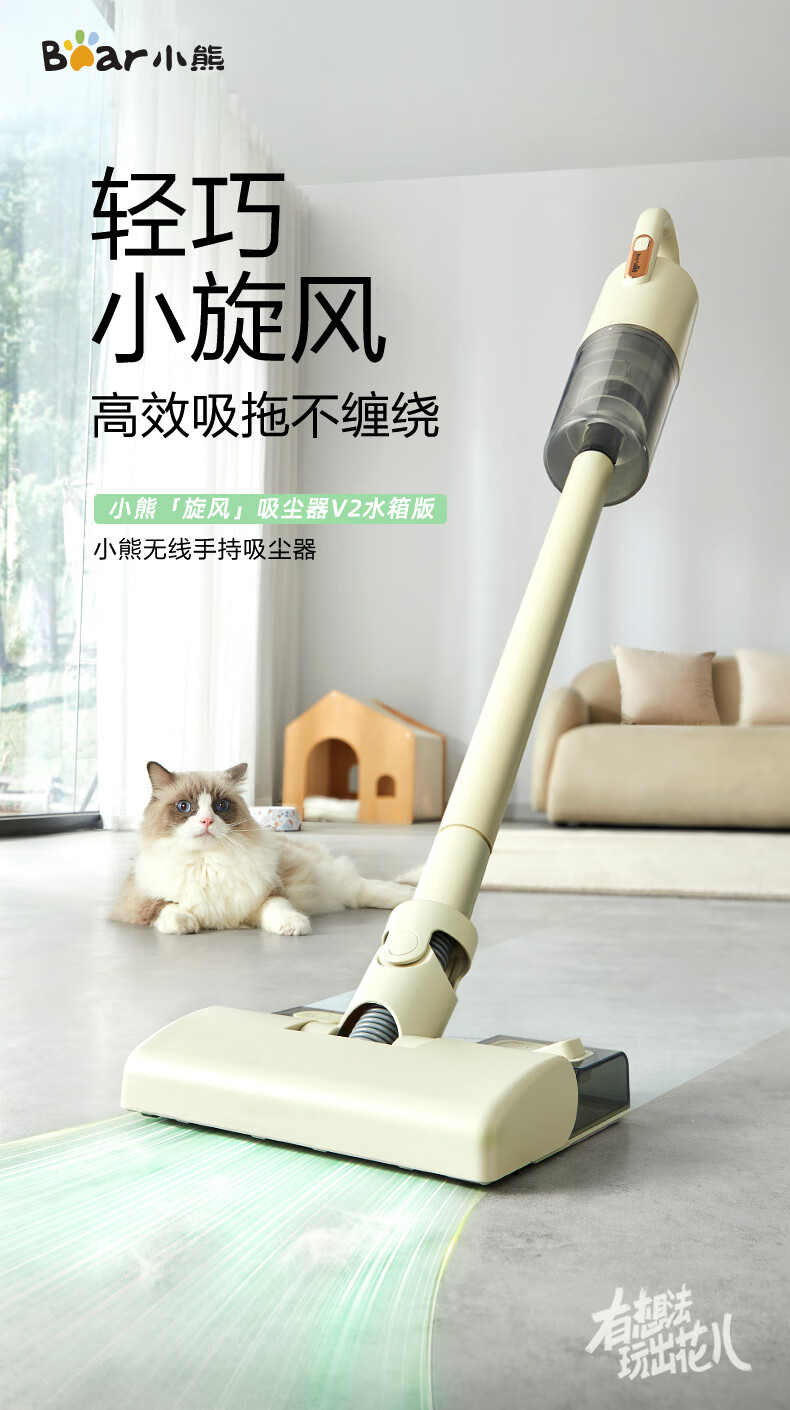 Bear Wireless Vacuum Cleaner Suction and Mopping All-in-one Home Super Powerful Suction Handheld Lightweight Portable Powerful Suction Pet Hair Anti-Tangle Vacuum Cleaner Cyclone V2 Water Tank Version