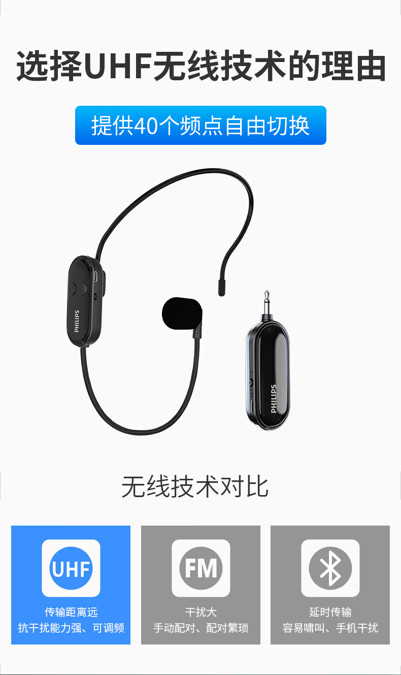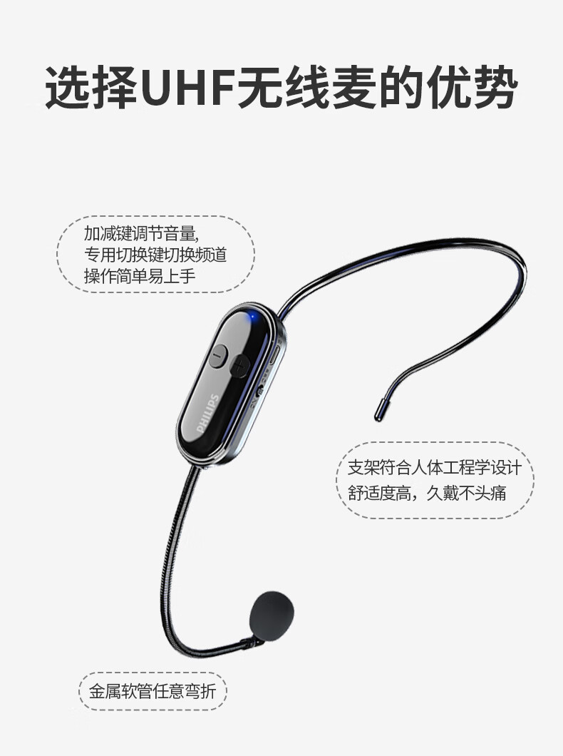Philips (PHILIPS) SBM129 Little Bee Wireless UHF Headset Microphone Teacher Teaching Tour Guide Shopping Guide Conference Walk-in Performance Street Stall Selling Headset