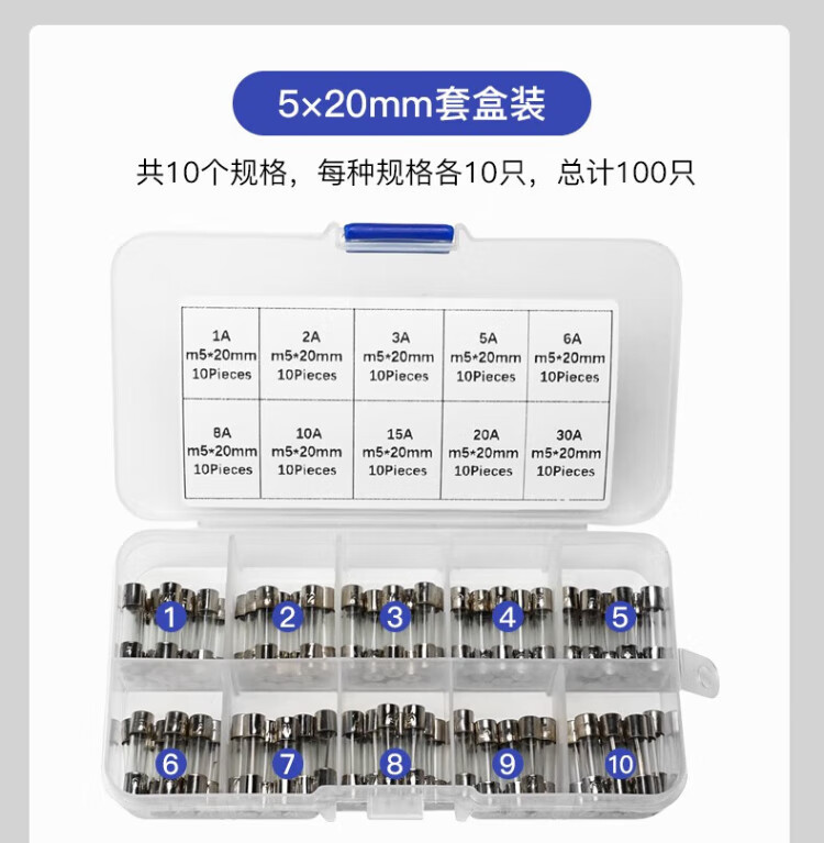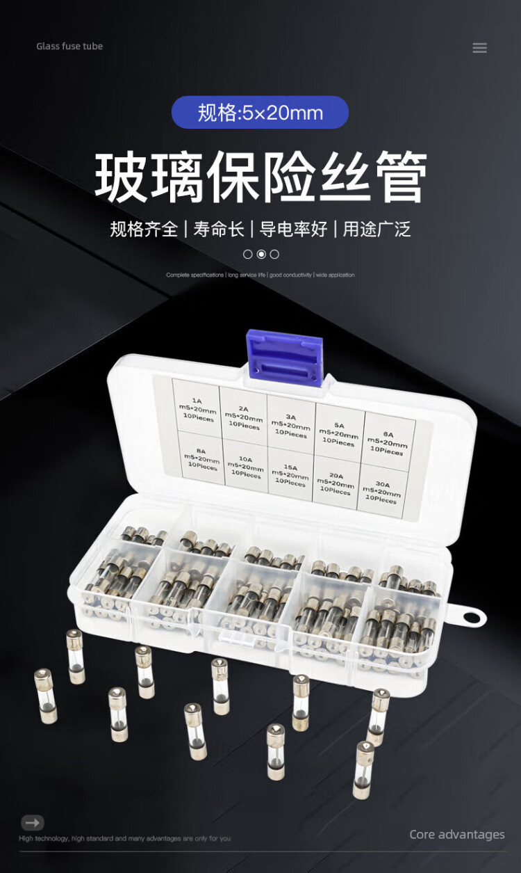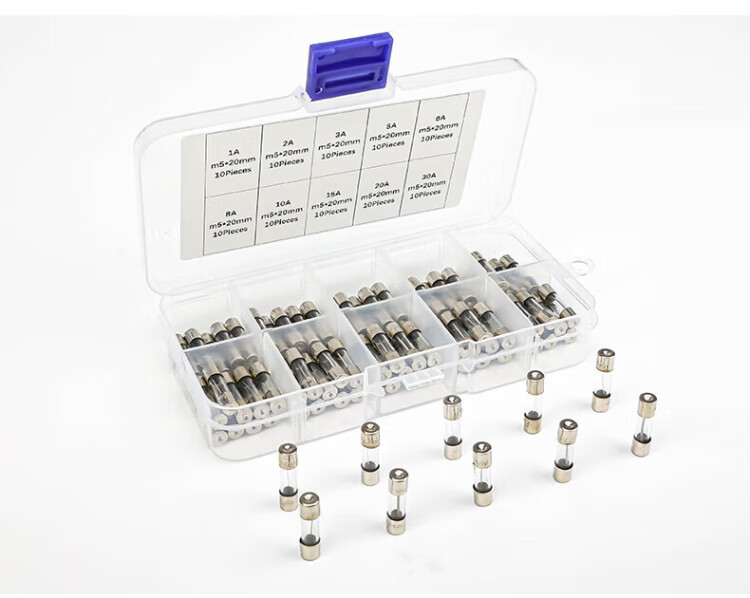 Huijun glass fuse tube circuit protection fuse 250V power socket circuit charger protection glass tube 5*20mm-1A (10 pieces)