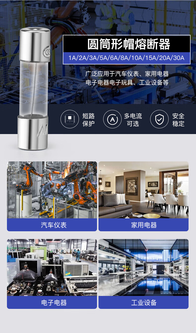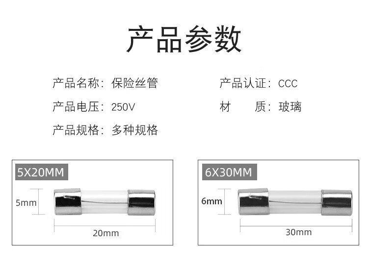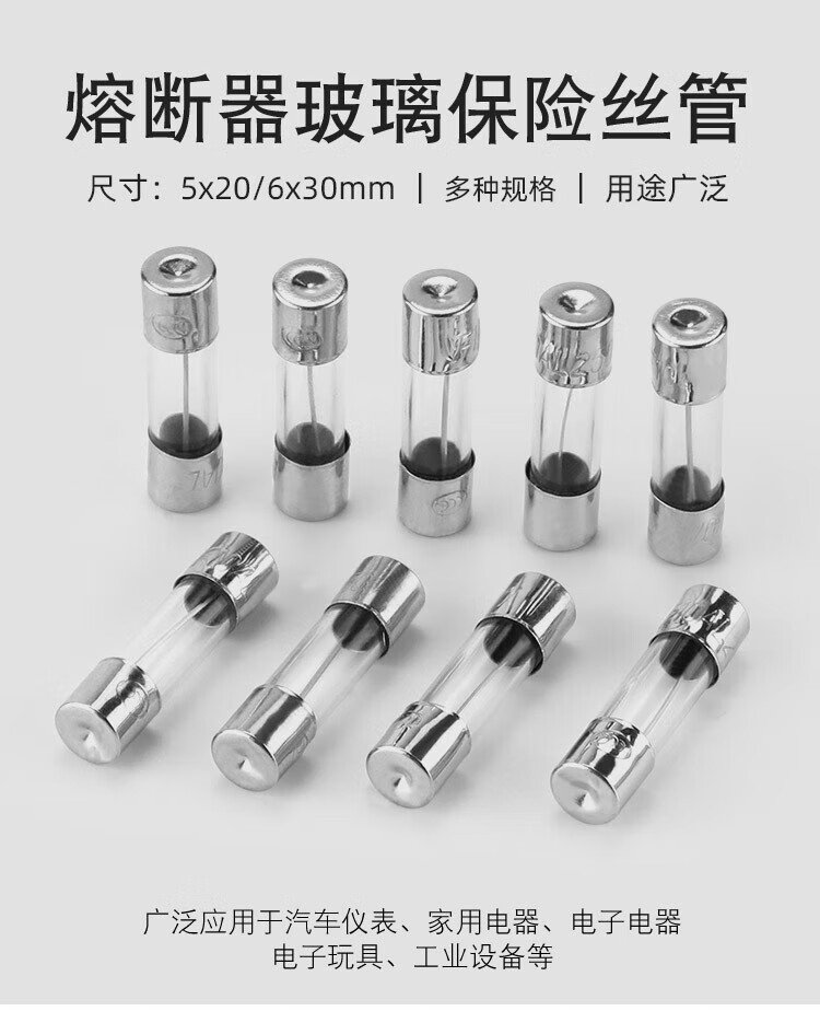 Huijun glass fuse tube circuit protection fuse 250V power socket circuit charger protection glass tube 6*30mm-10A (10 pieces)