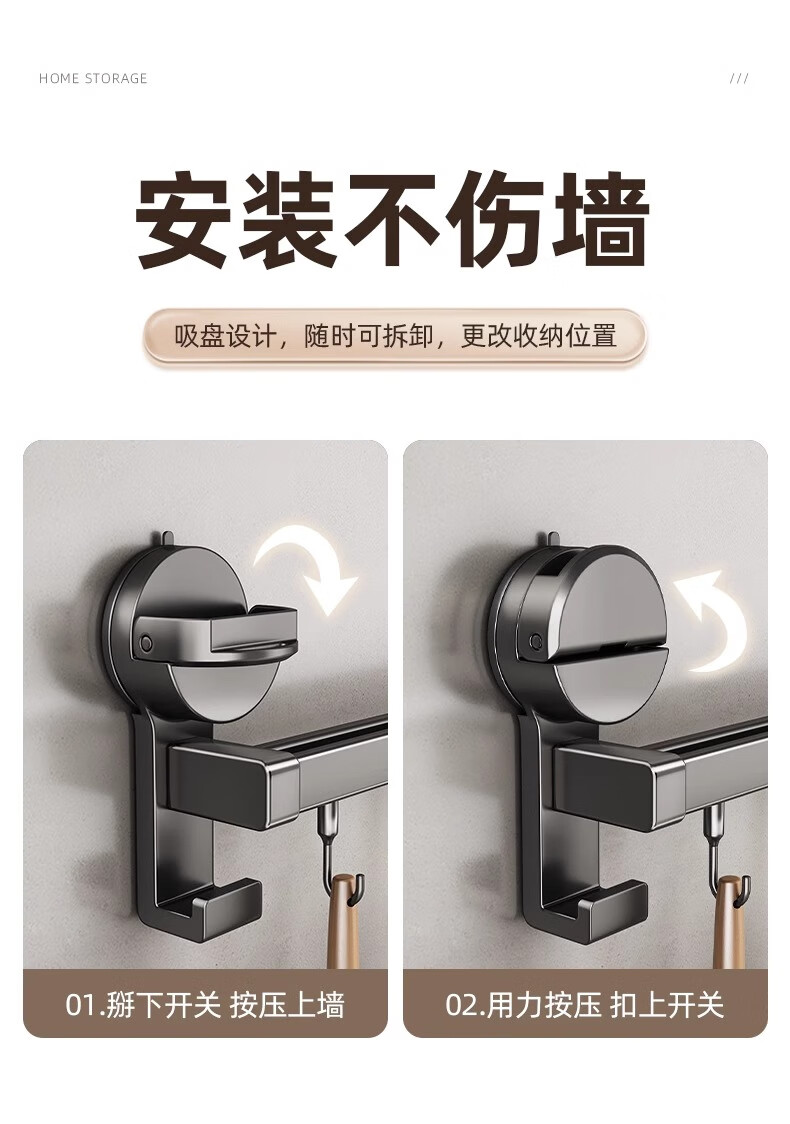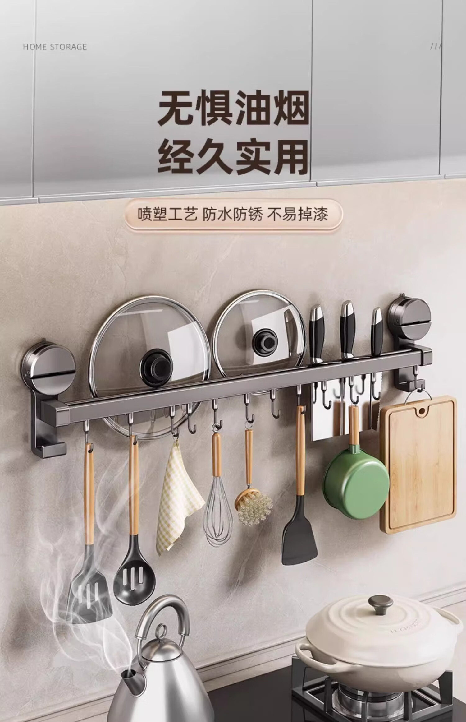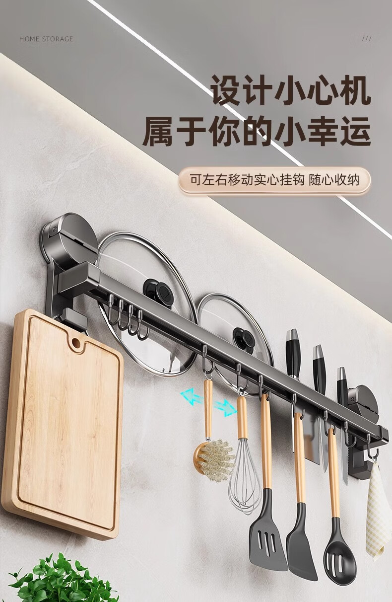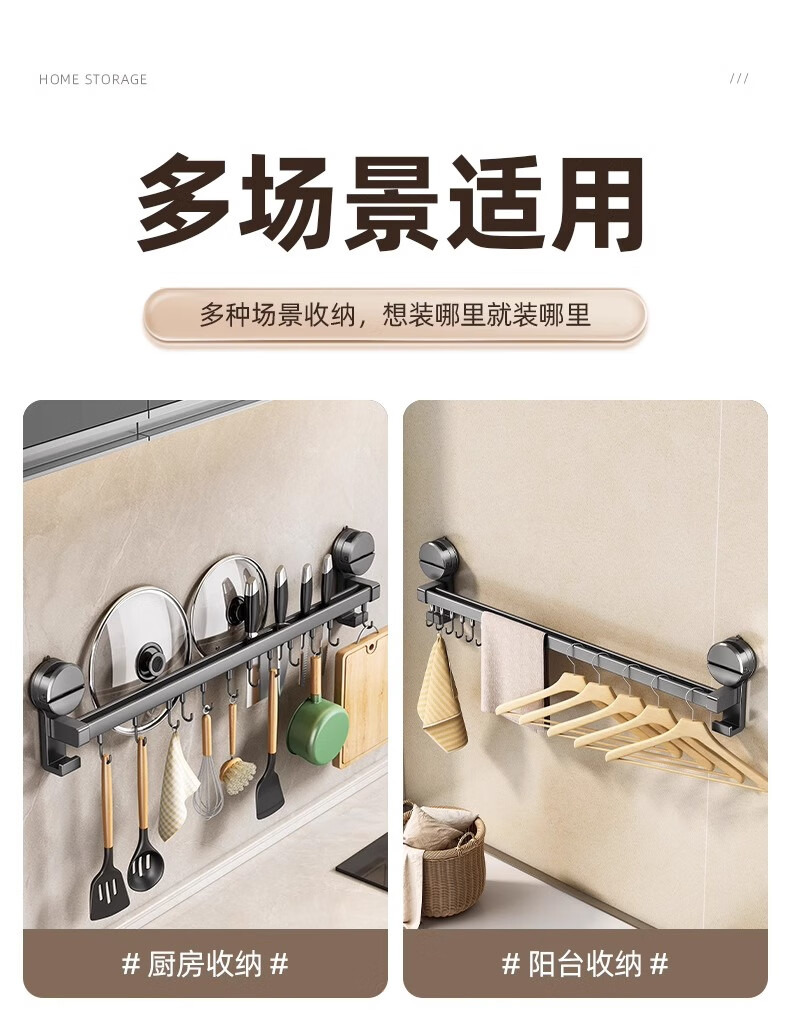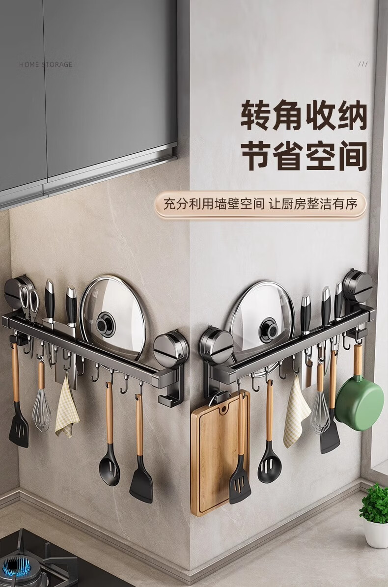MUYA suction cup kitchen hook multi-functional storage rack without punching hanging rod pot lid spoon shovel knife rack storage rack