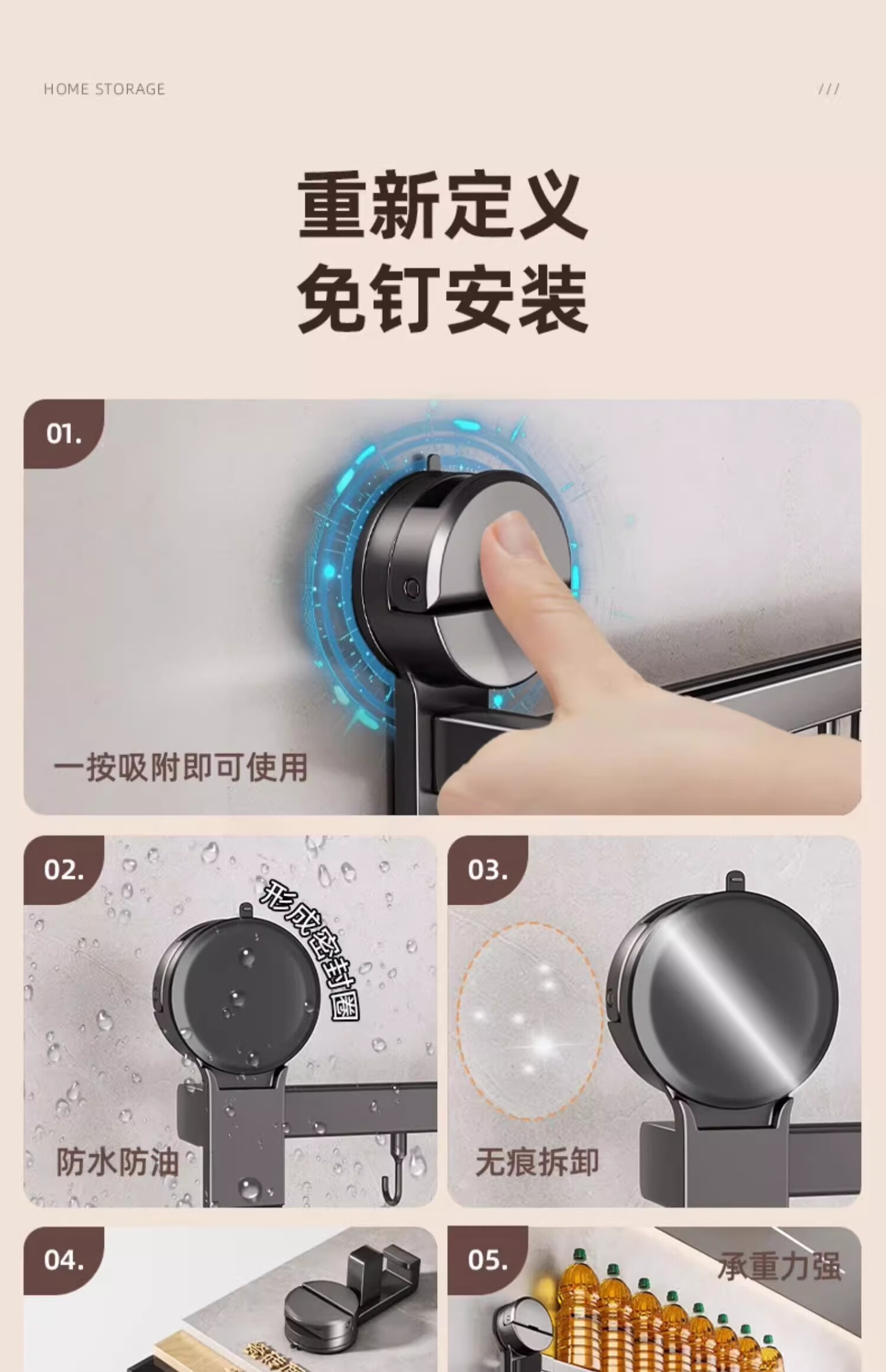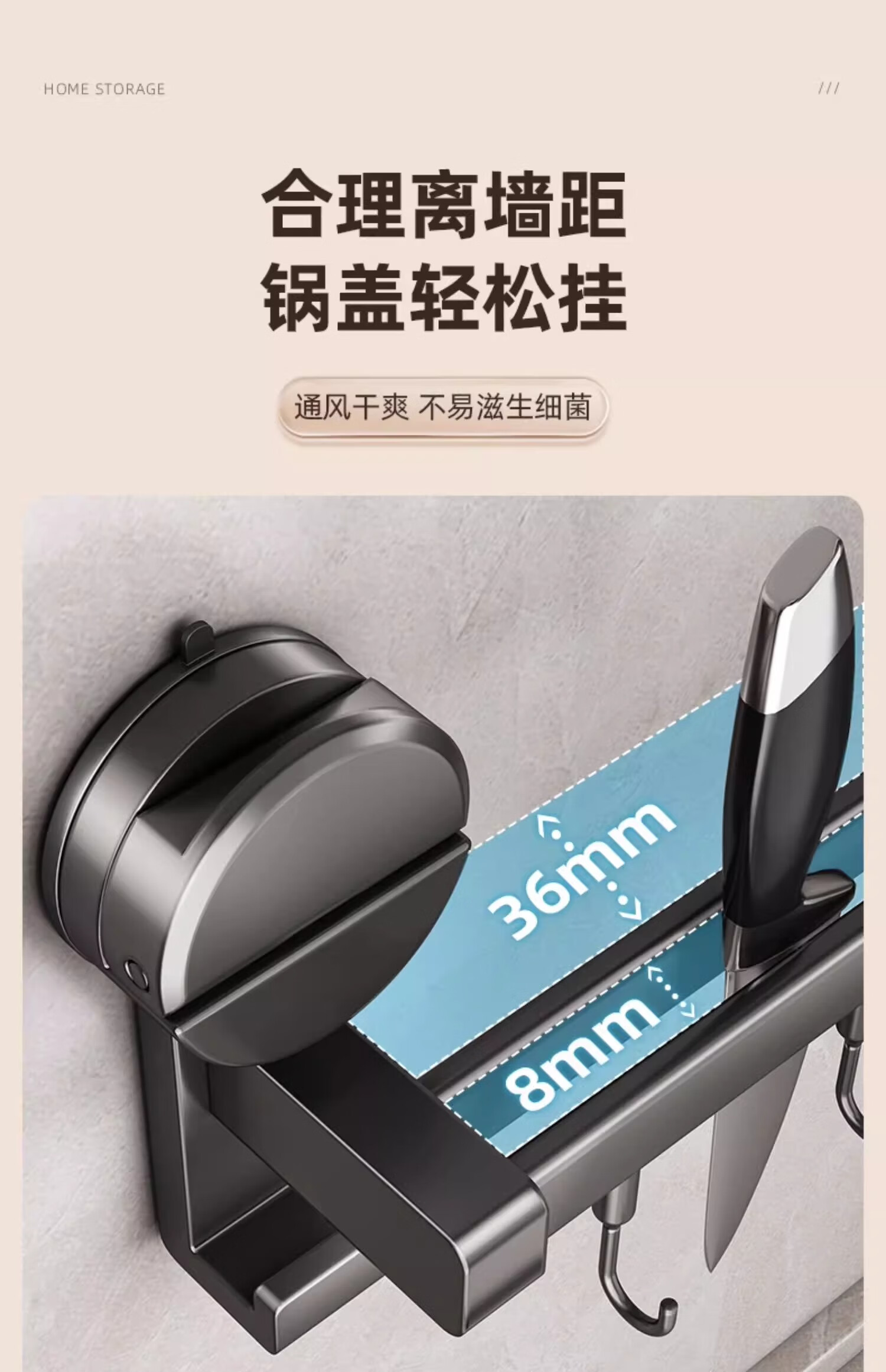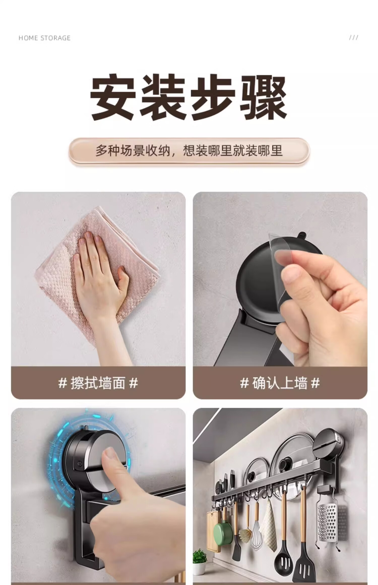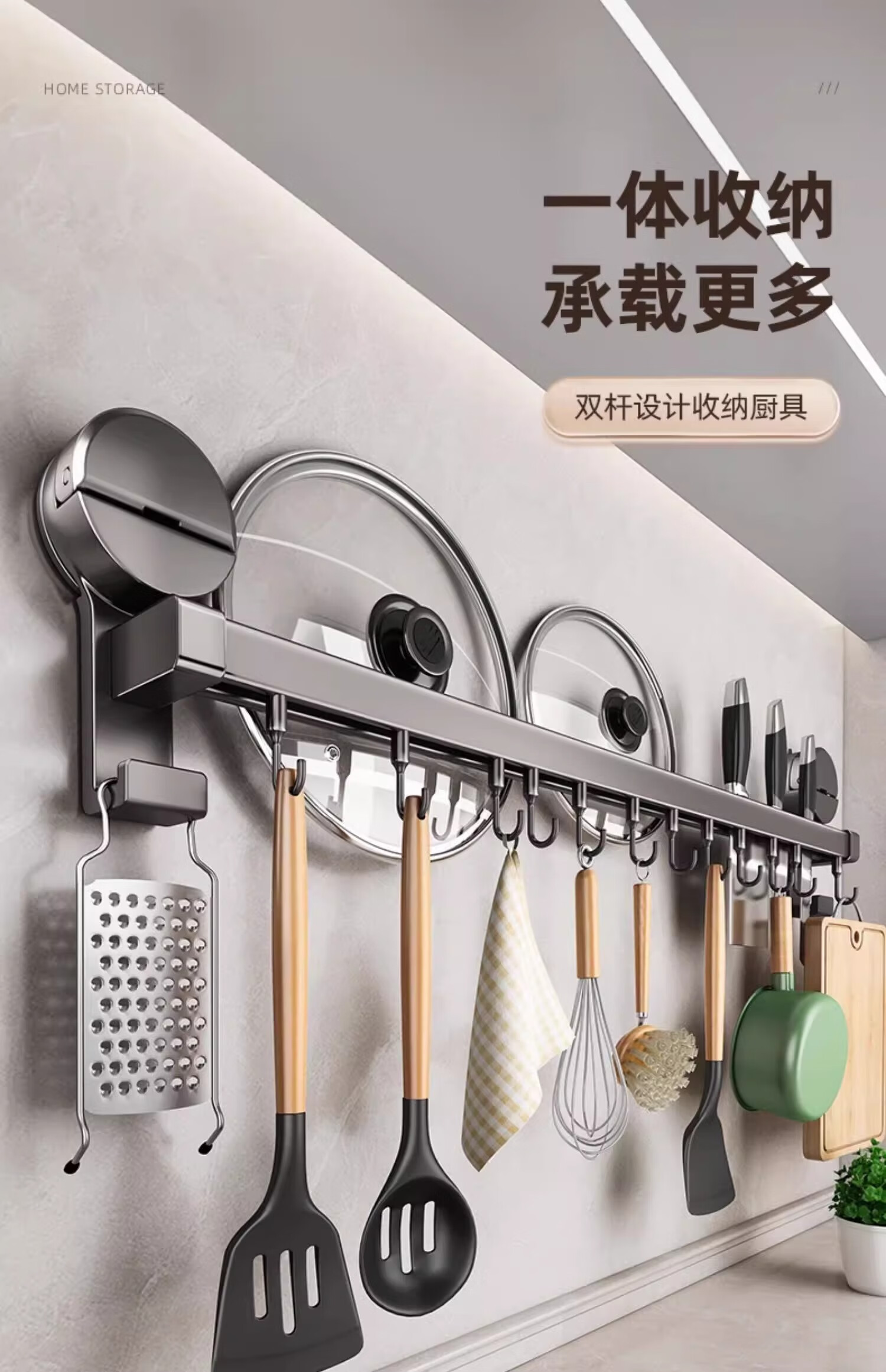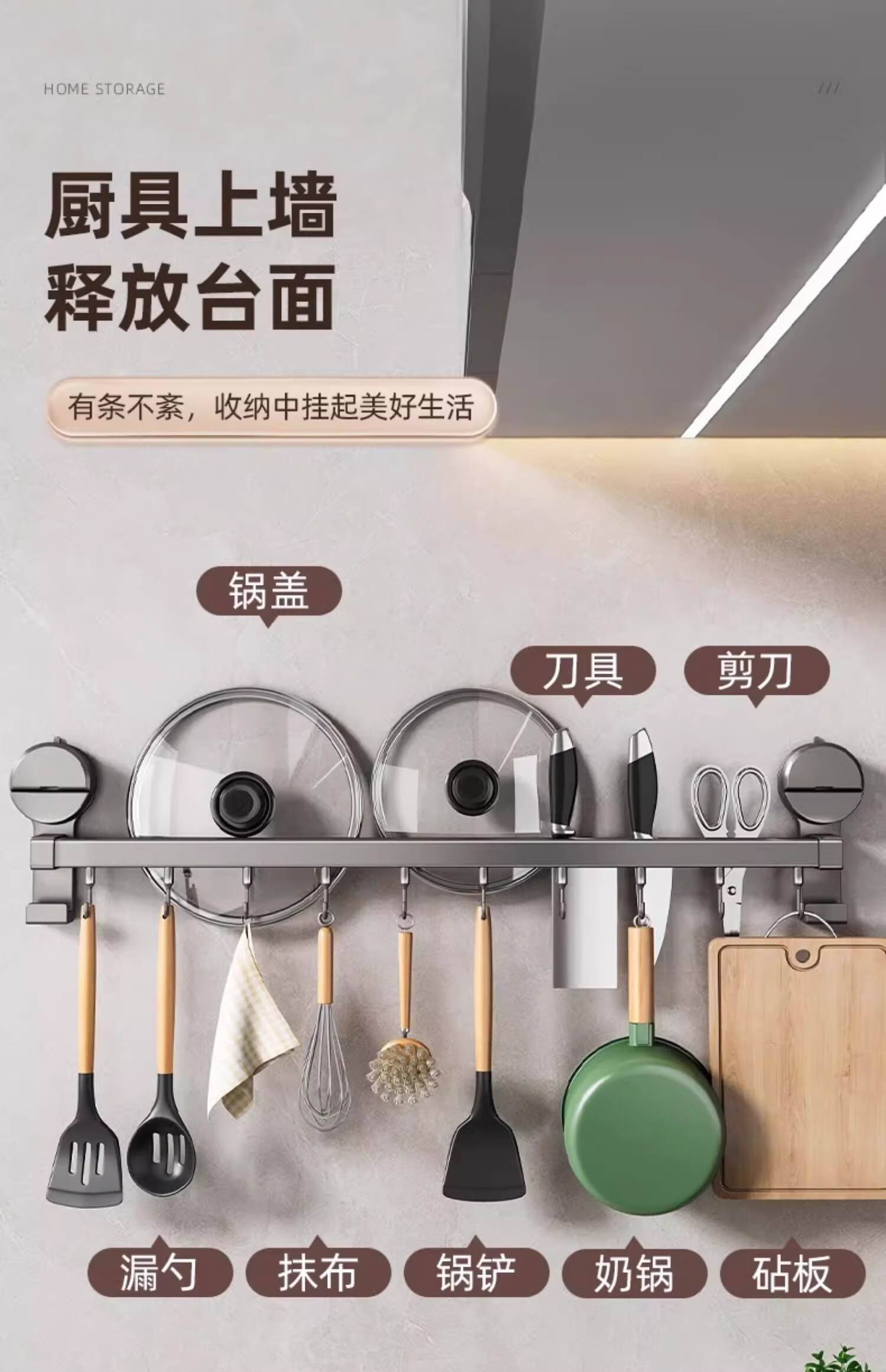 MUYA suction cup kitchen hook multi-functional storage rack without punching hanging rod pot lid spoon shovel knife rack storage rack