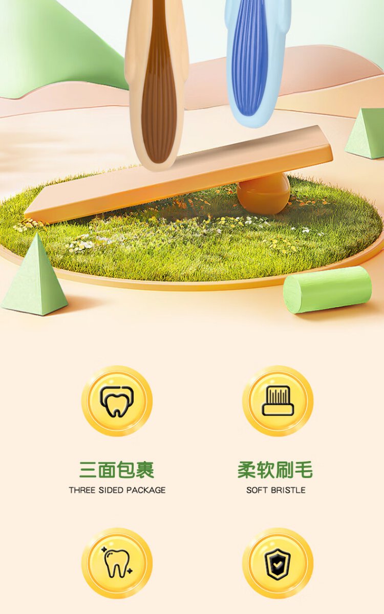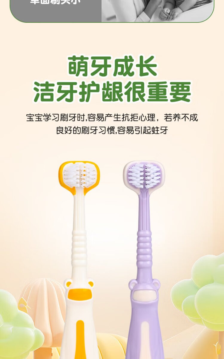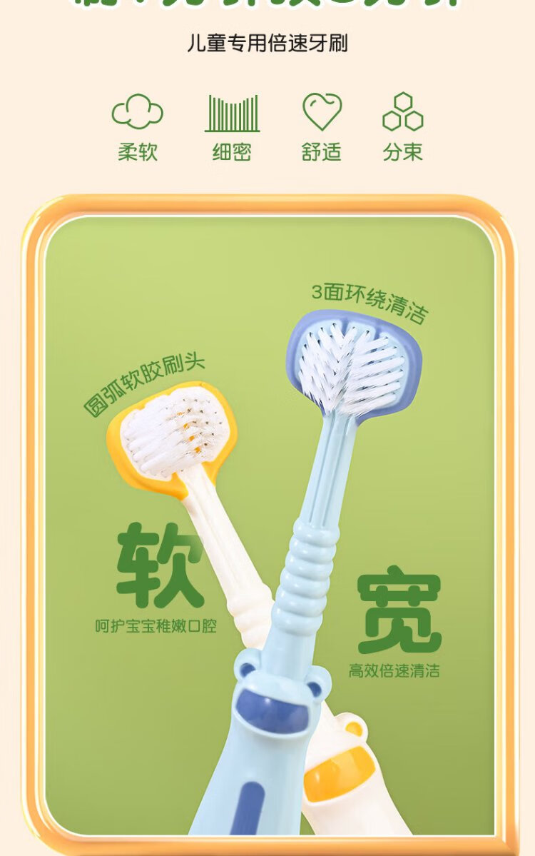 BRUSHING BEAR Sam's same style children's toothbrush * 4 three-sided soft bristles U-shaped toothbrush for babies and toddlers aged 3-6-12 years old.