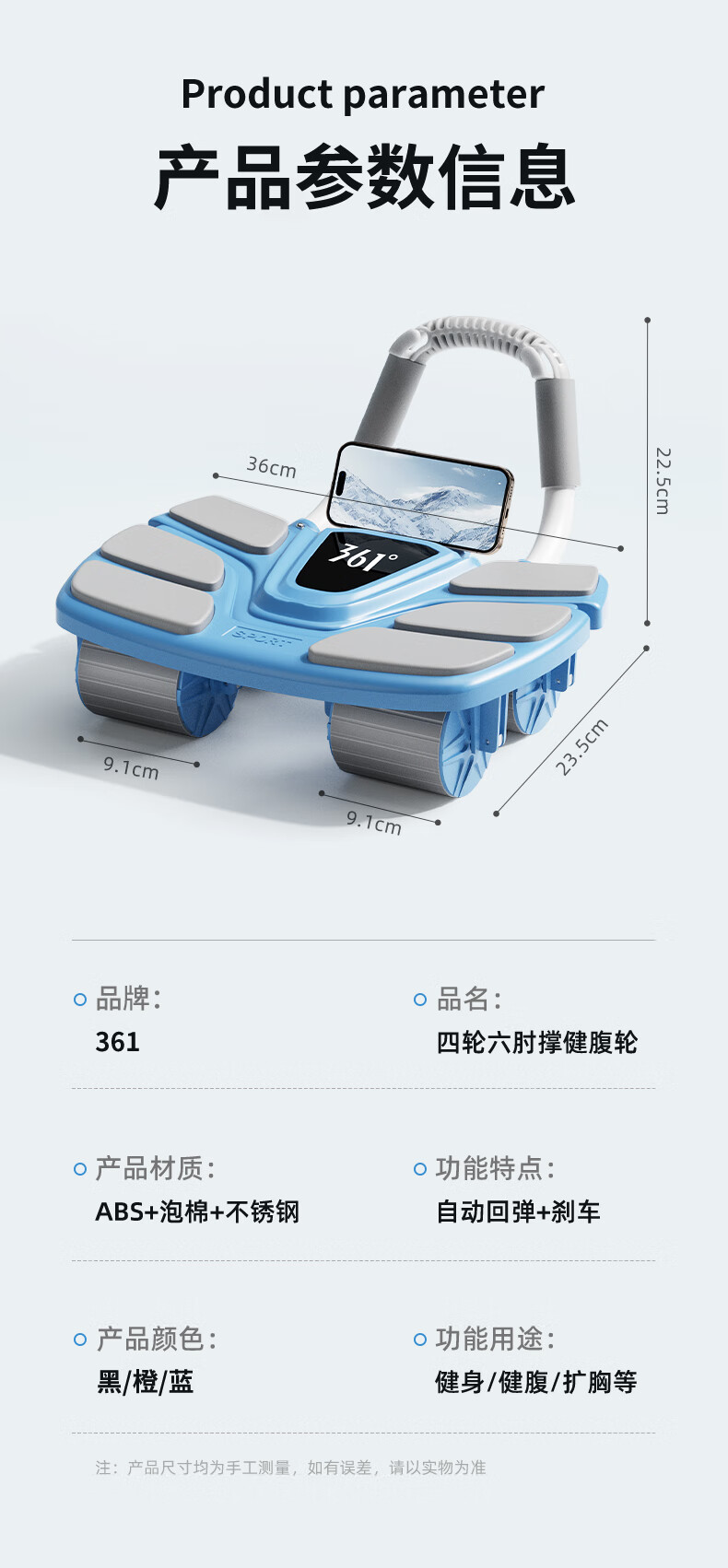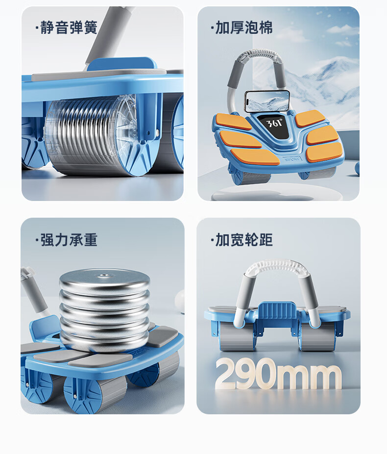 361 Abdominal Wheel Automatic Rebound Home Four-Wheel Fitness Exercise Belly Training Abdominal Rolling Machine