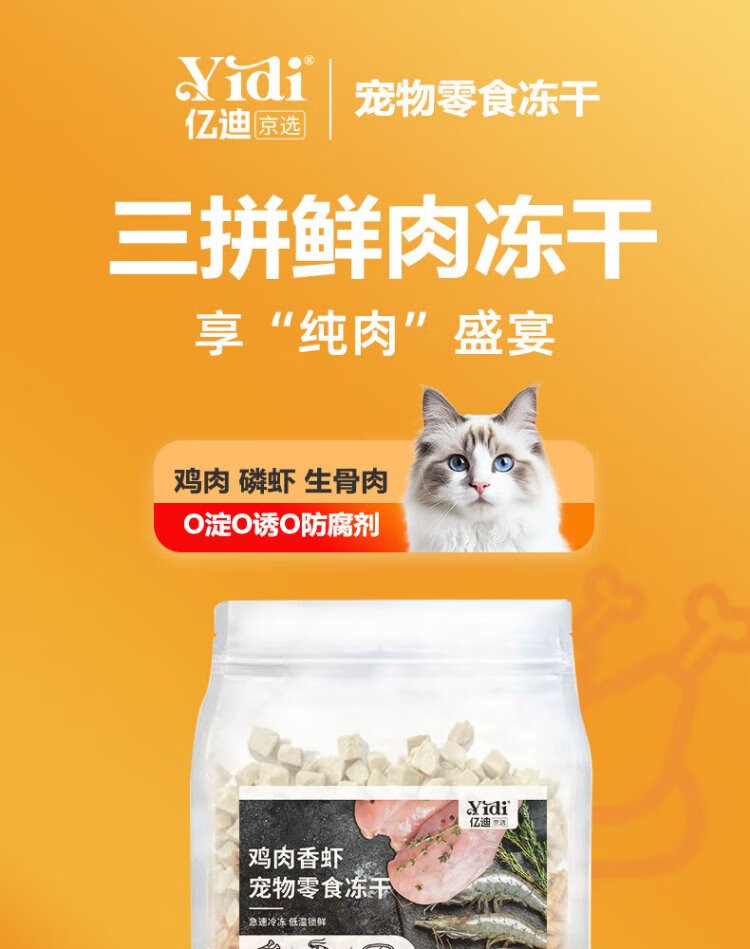 Yidi staple food freeze-dried krill raw bone meat chicken full price snacks for cats and dogs universal cat food companion 1 catties 500g