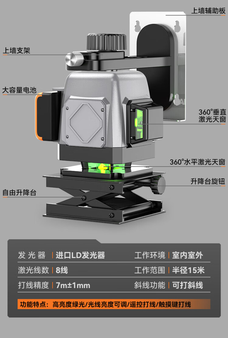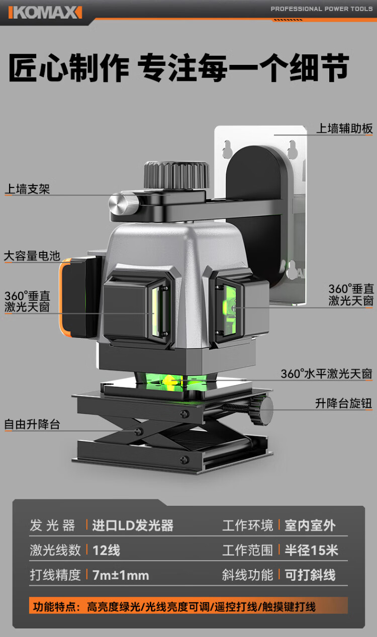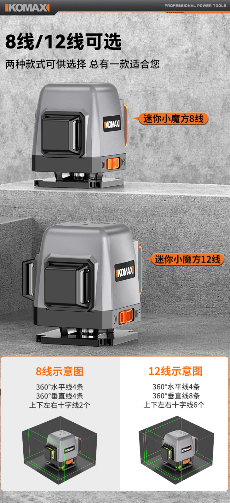 Komax infrared level meter high-precision strong light thin line automatic leveling green light 8-line outdoor outdoor construction laser