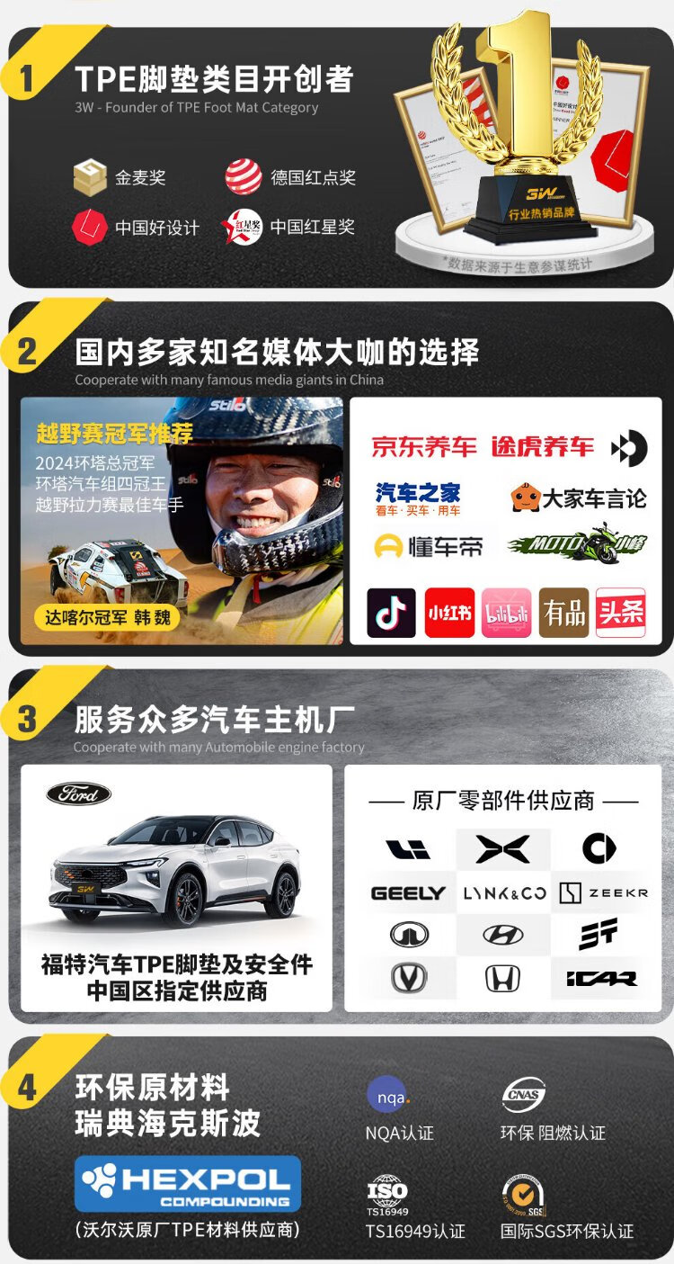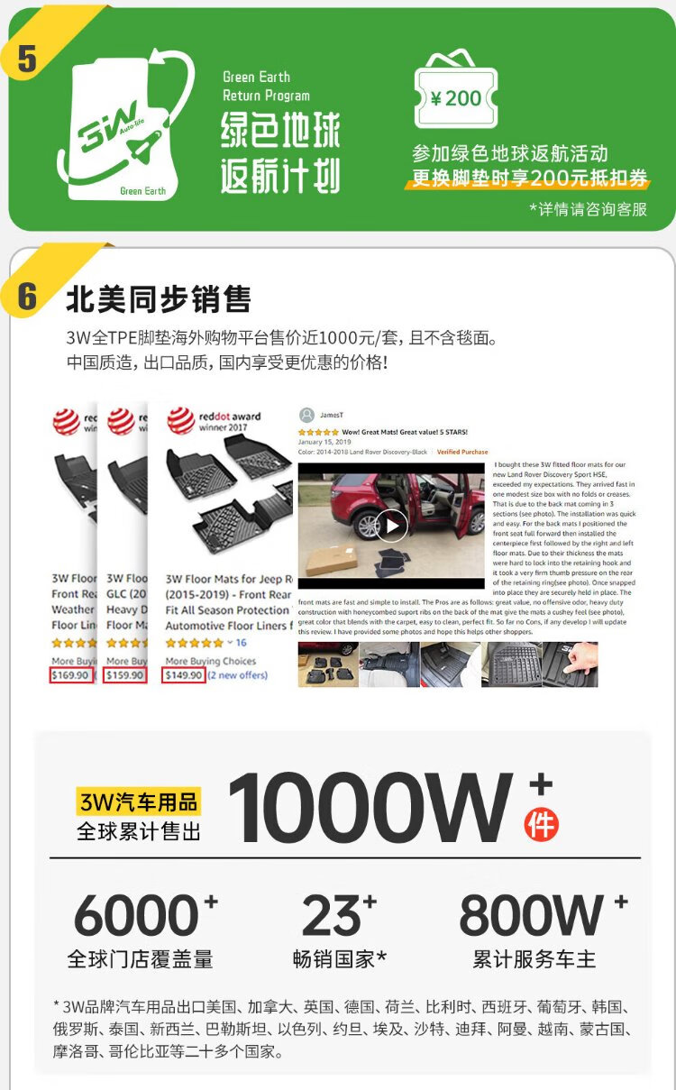 Jingdong Car 3wauto-life Tesla model 3 renewed version TPE car floor mats 5-piece set