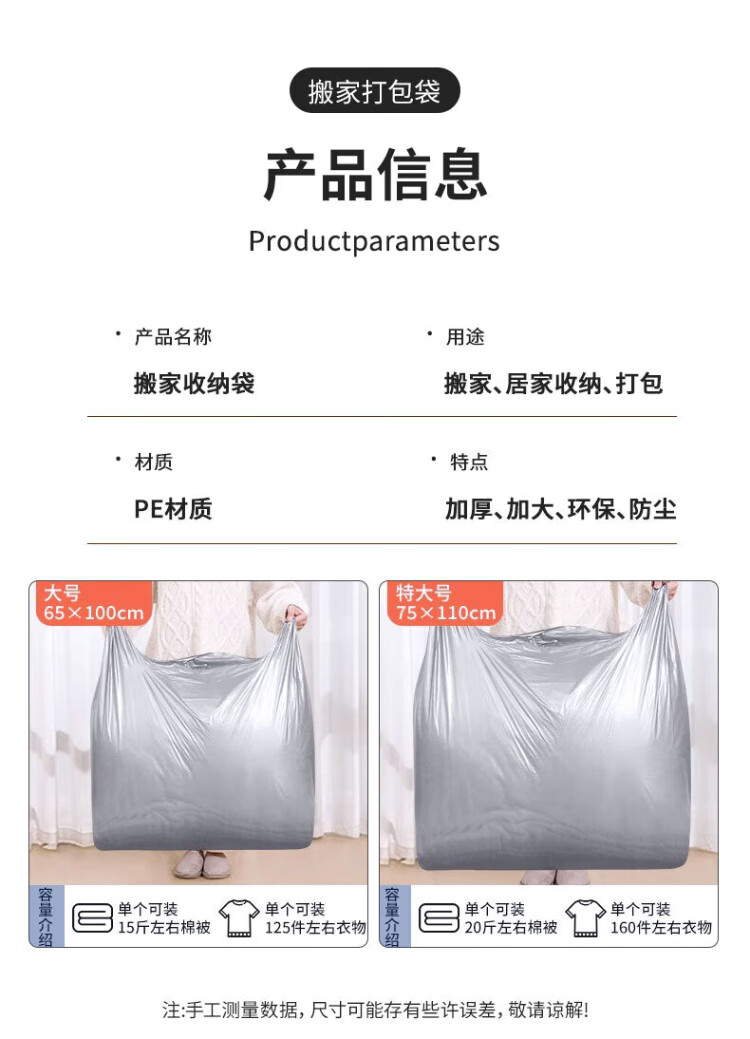 40,000 kilometers moving packing bag, disposable quilt, quilt, clothes storage bag, large-capacity moving special artifact, 10 pieces